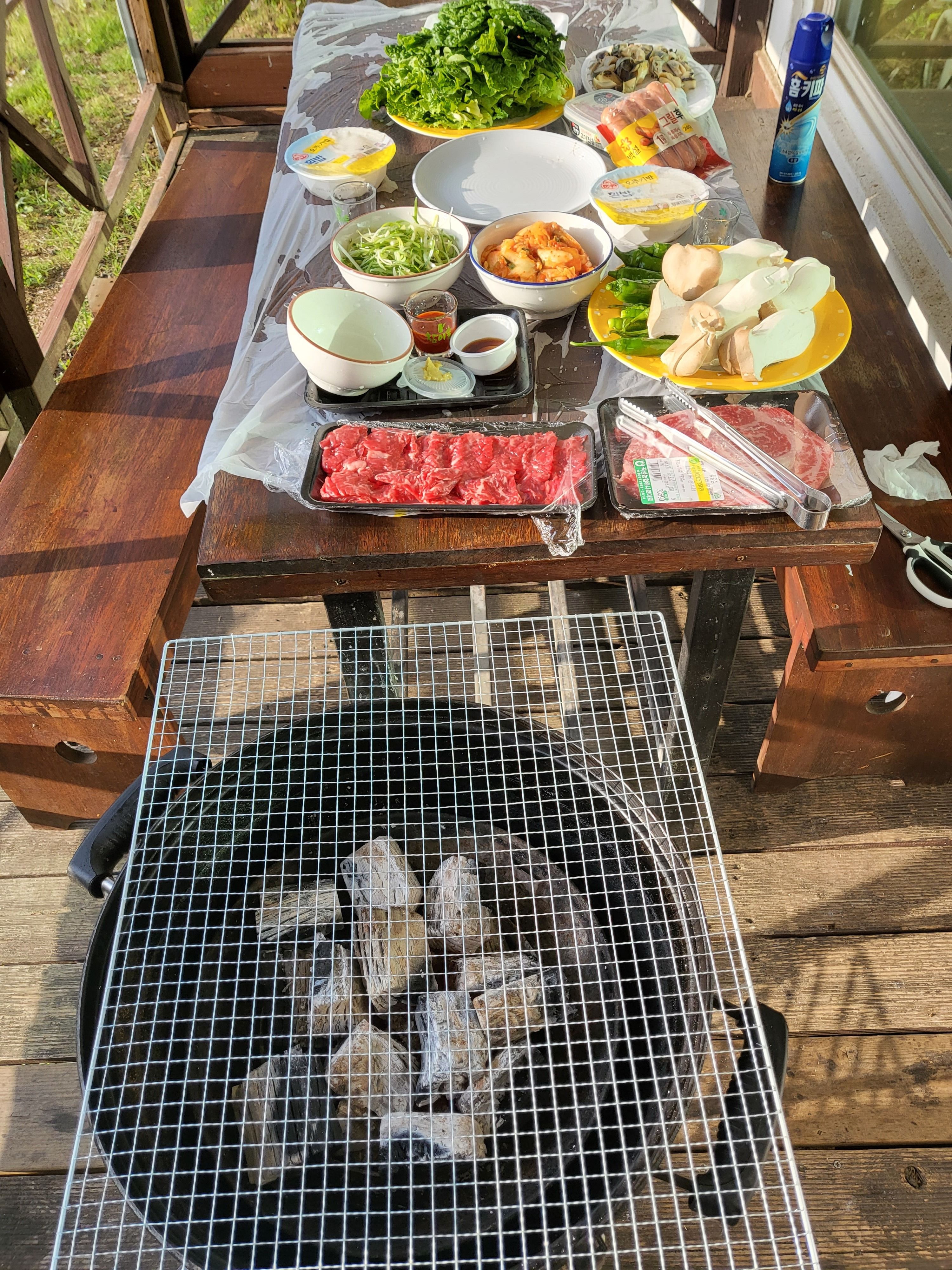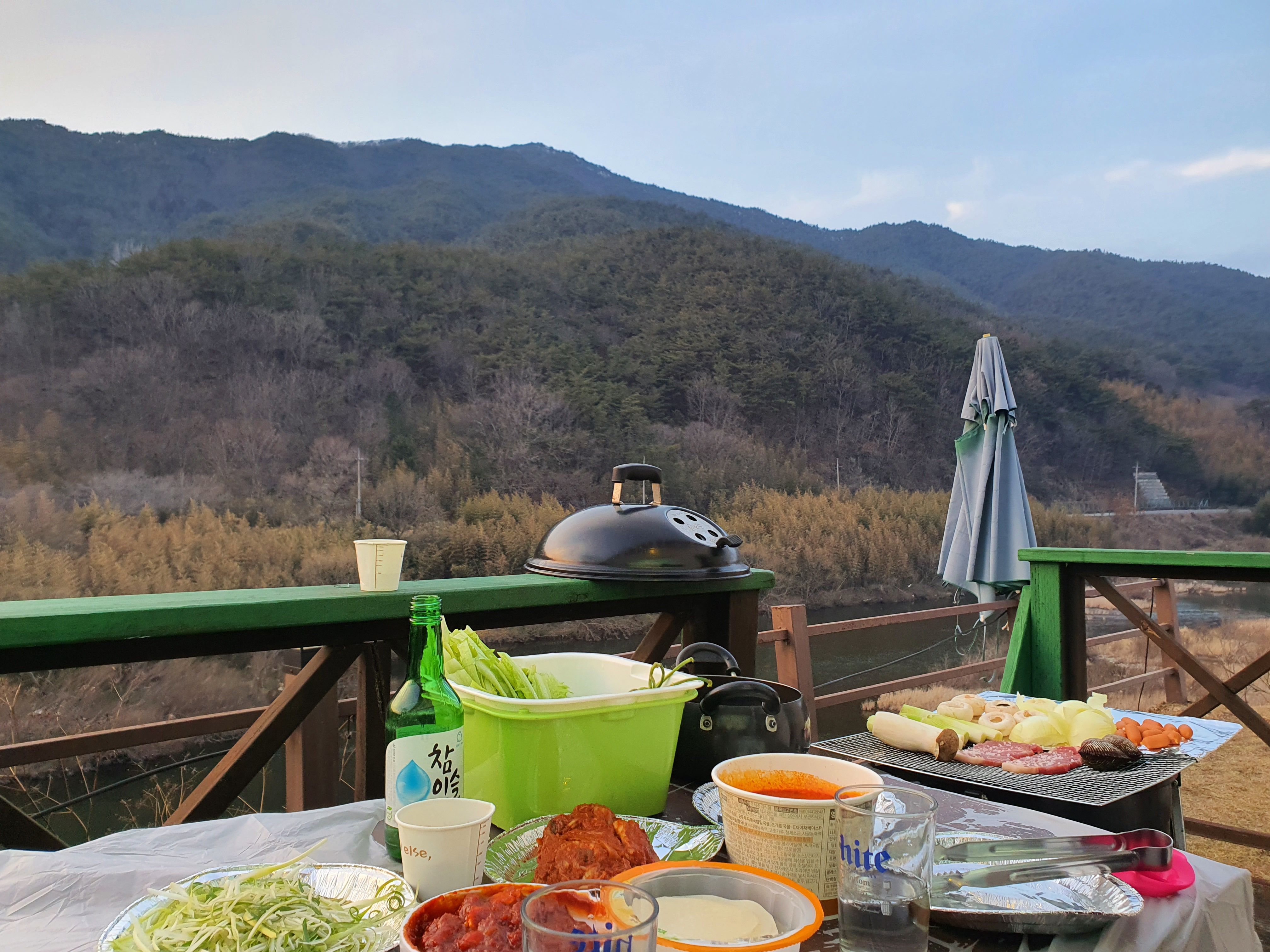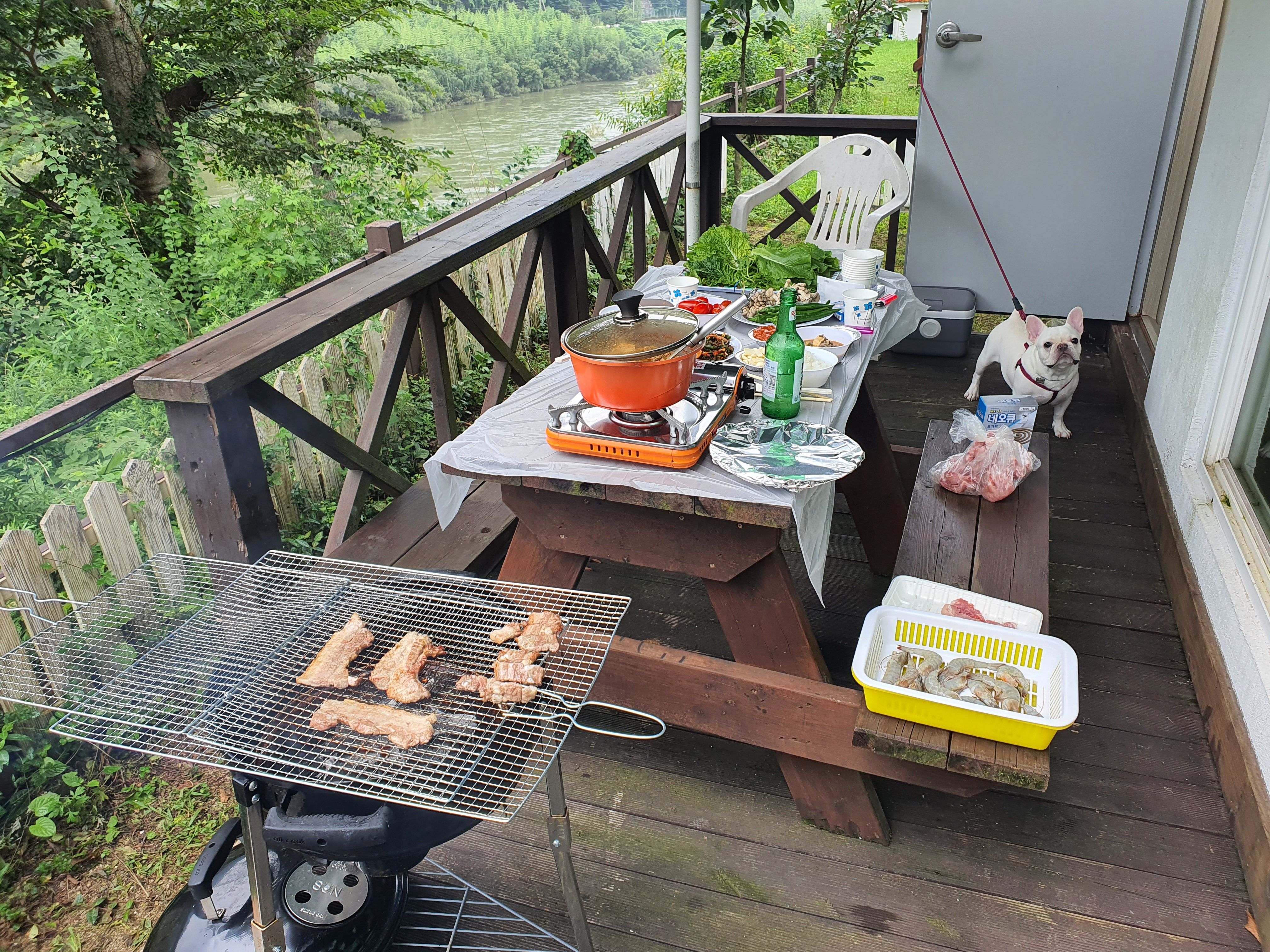 먹을거만찍었네요 덕분에 뷰 좋은 곳에서 잘 놀다 갑니다 독채라서 더 좋았던거같네요 실외 수영장에서는 애들 놀기 좋았구요