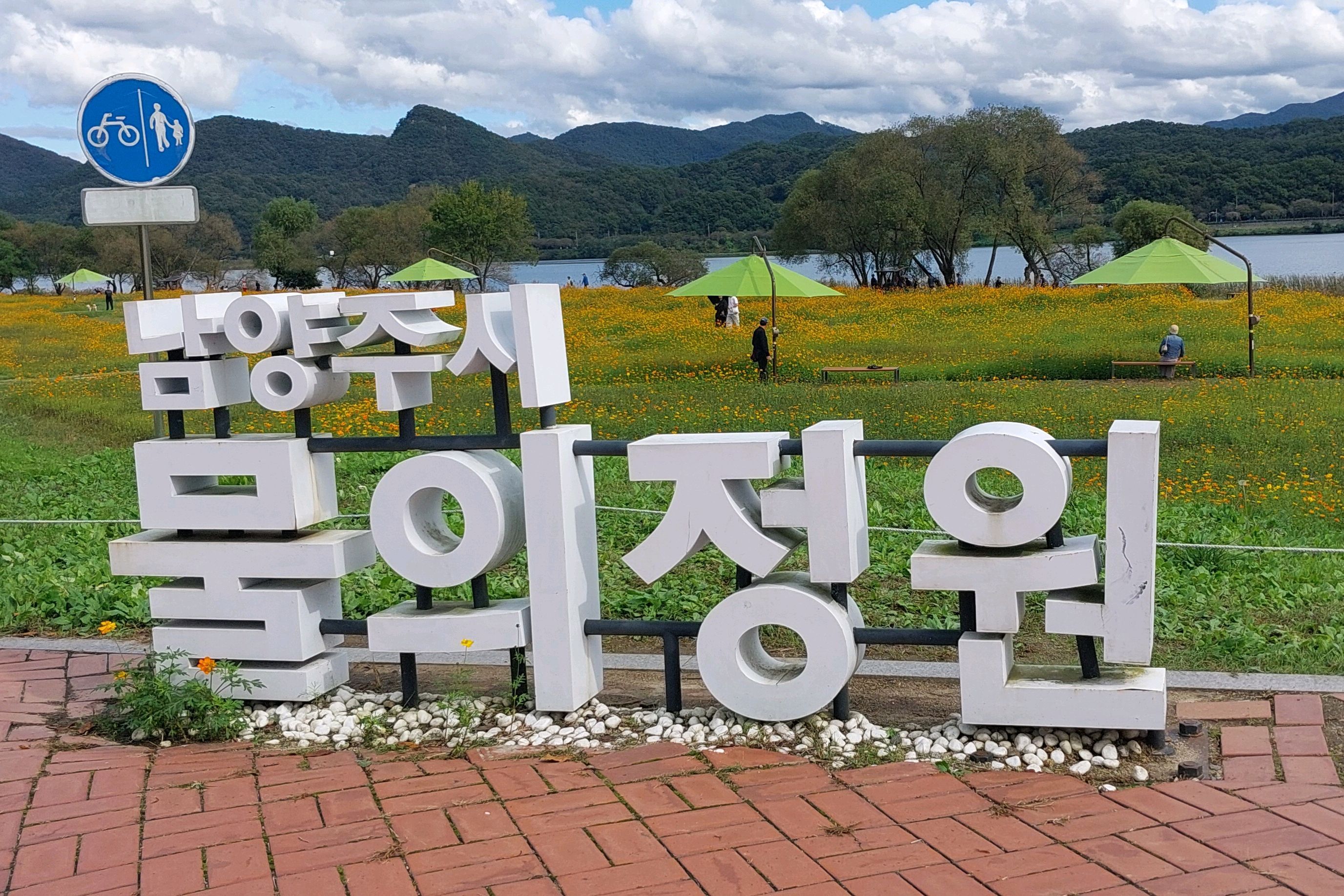 |  남양주 조안면  물의 정원입니다.  북한강과 접해 있고, 신책로가 잘 되어 있습니다.  노란코스모스가 많이 피었네요. 하늘은 높고 청명한 날입니다. 2025년 10월 15일 |