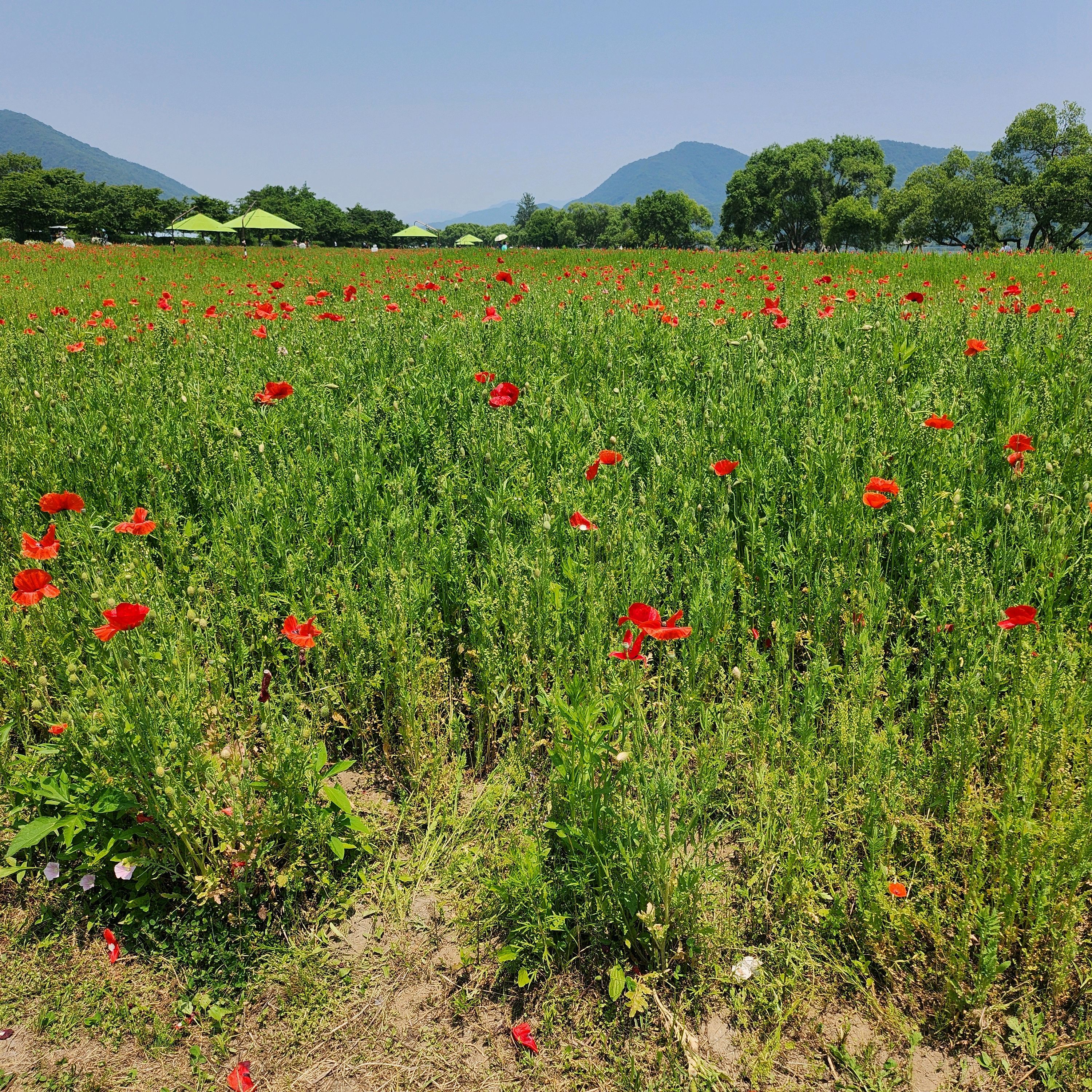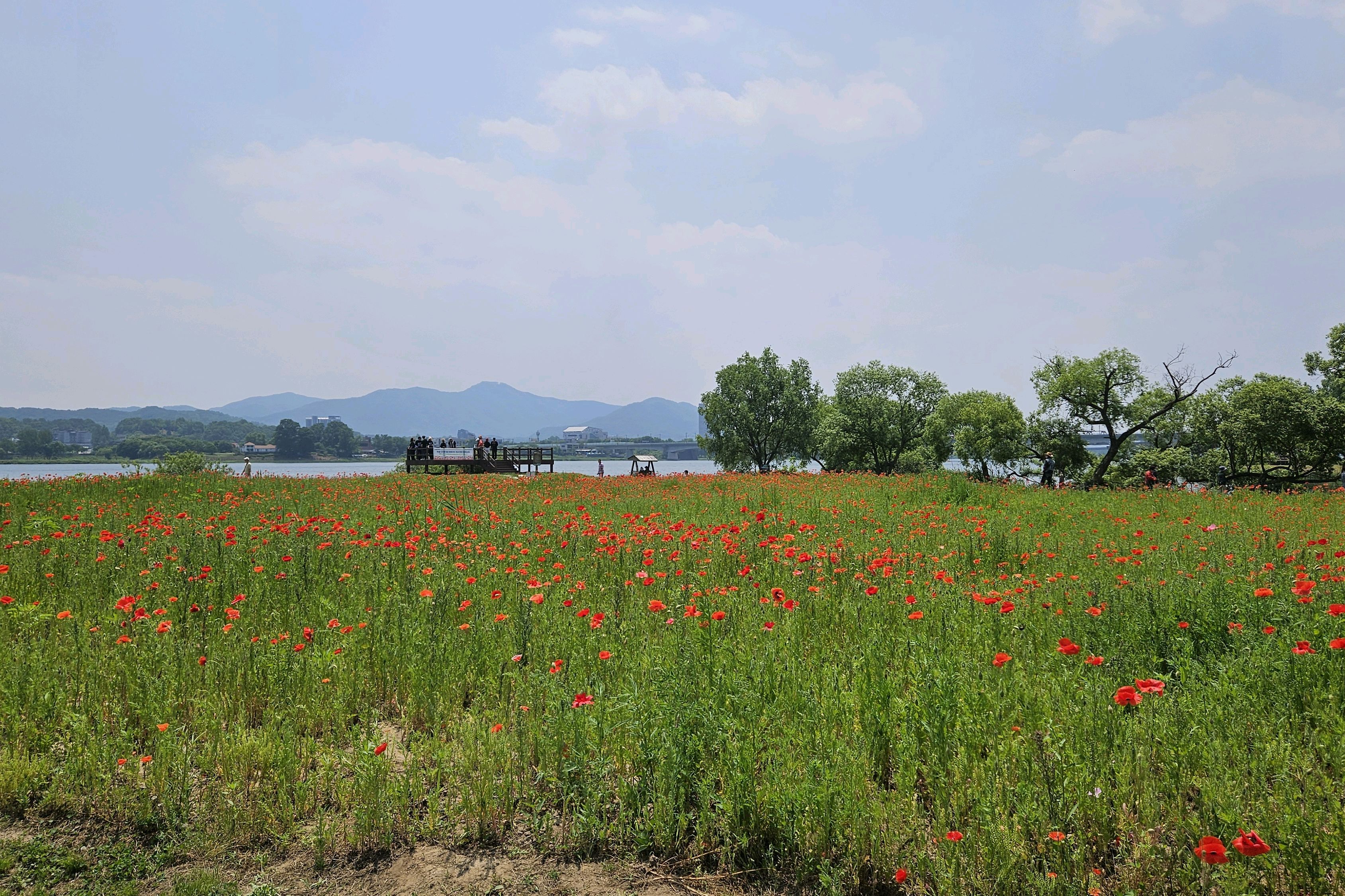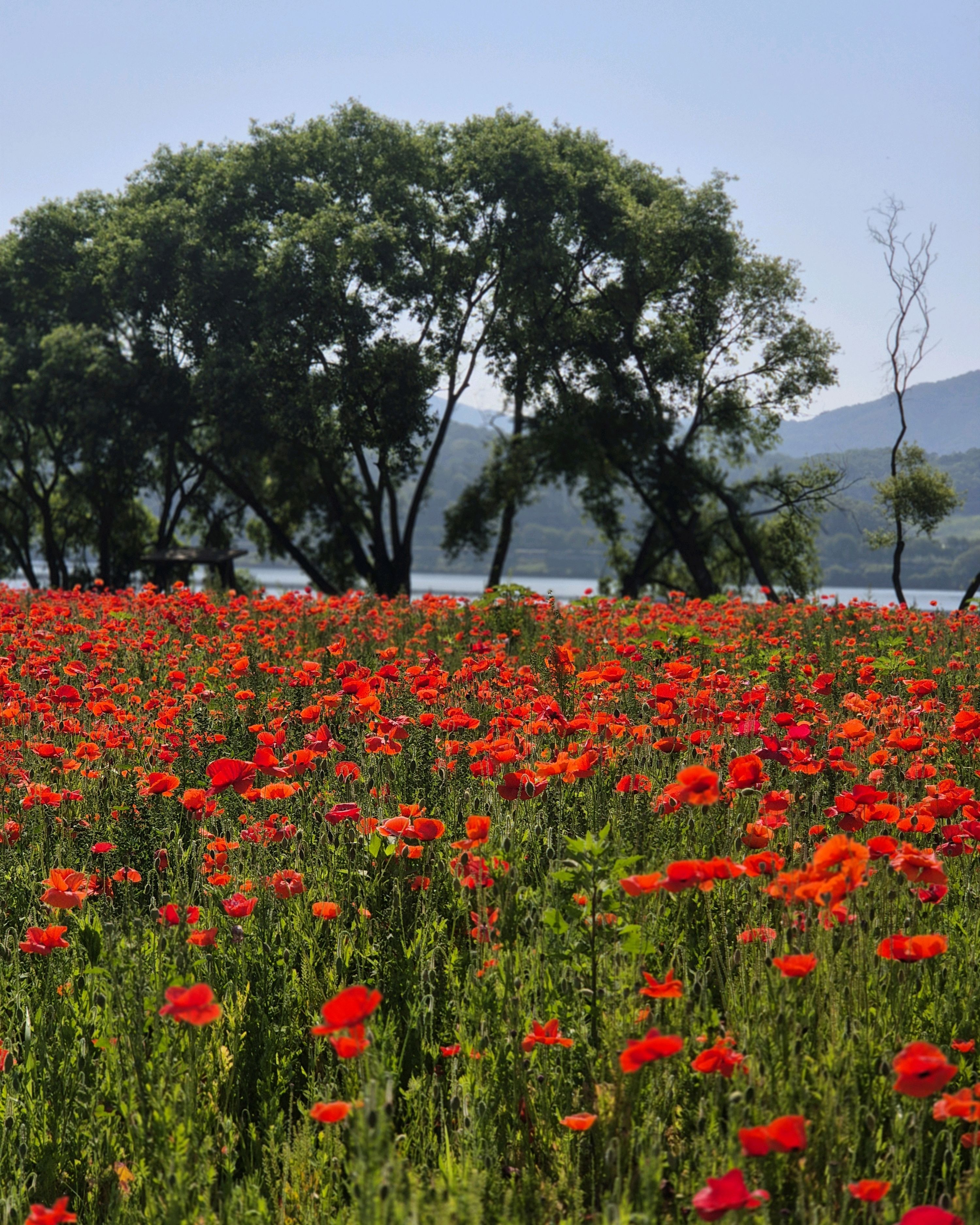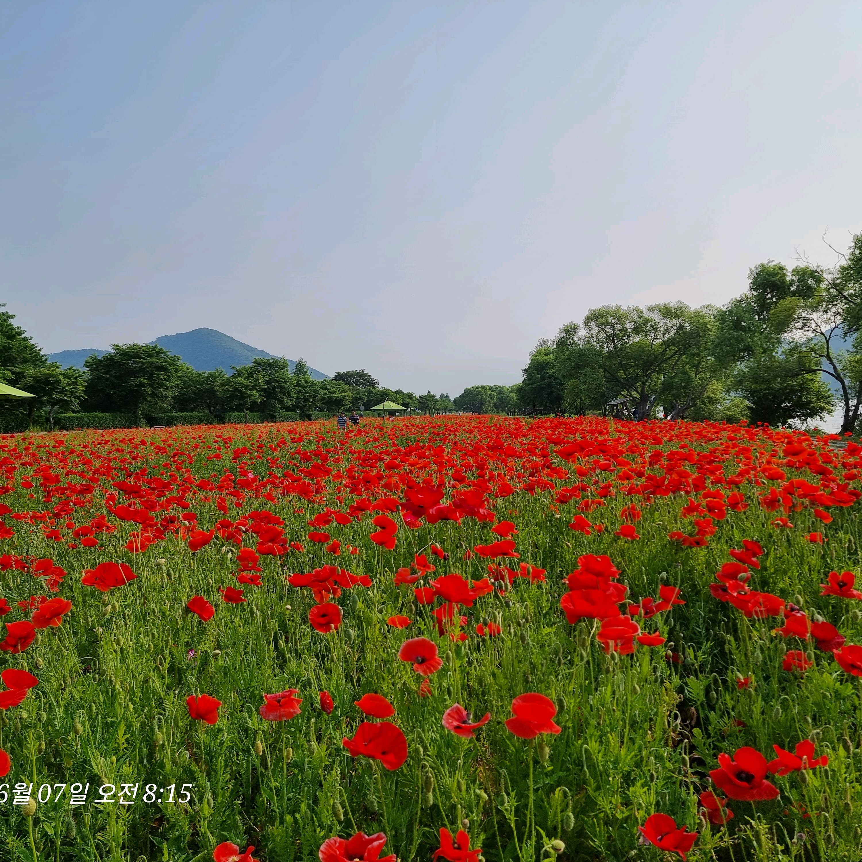 |  양귀비가 절정을 이룬 물의 정원. 붉은 양탄자를 깔아 놓은 듯 양귀비의 물결이 환상적이예요. 올해는 유독 양귀비의 색상이 빨갛게 물들어서 환상적인 경관을 자랑하고 있어요. 양귀비가 시들기전에  다녀오세용 2025년 06월 11일 |
