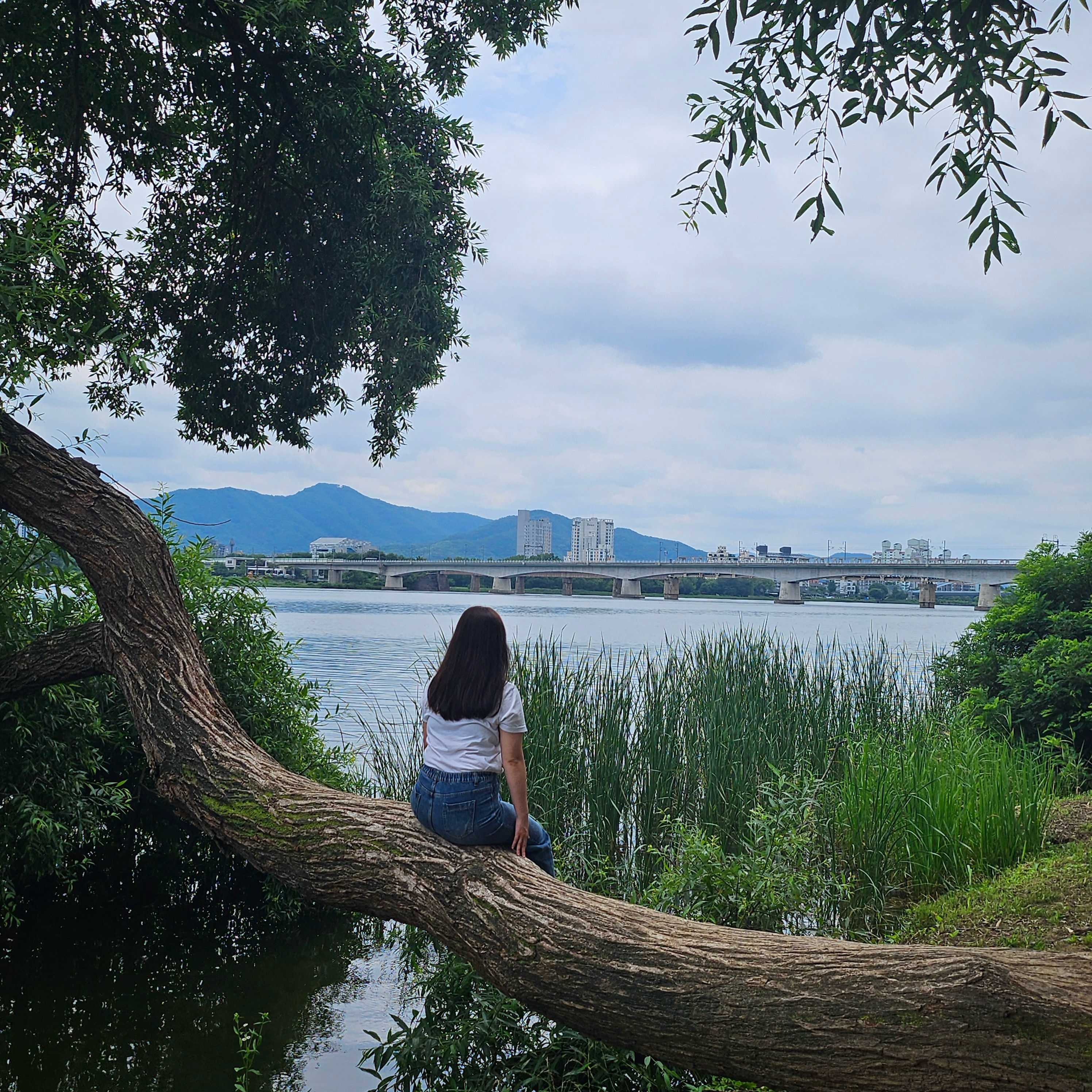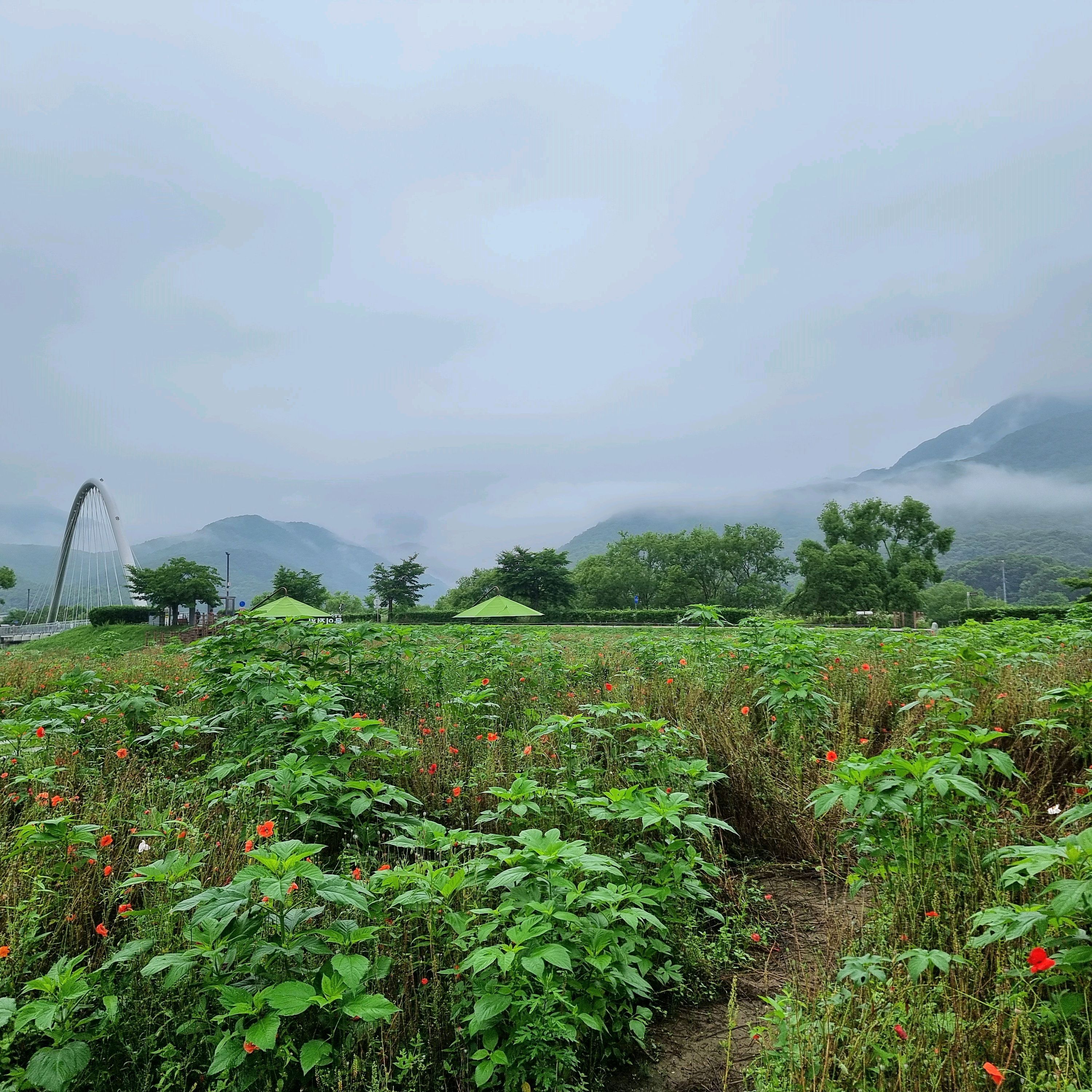 |  장마에 양귀비 꽃 지기전에 무더위에 마음먹고 토요일 오후에 갔어요. 3~4시 목표로 갔는데 5시 이후가 적당할듯요. 넘넘 이쁜데 더워서 땀을 한바가지는 흘린듯. 산책로 길가에 카페들이 있어서 땀 식히기에 제격이었어요. 샐러드림의 시금치 스무디 강추요. 오이스무디 시켰더니 오이 4개에 3천원짜리 공짜로 주시고👍 산책로에 있는 흔들그네타고 강바라보며 수다떨고ㅎ 나오는 길에 물안개 시원했어요. 연잎핫도그도 맛있고요. 커서 한끼 대용으로 그만이에요. 길거리 음식임에도 기름쩐내 하나 안나고 소세지가 매콤해서 느끼함 잡아주어 정말 맛나게 먹었어요. 식당 검색했었는데 물의 정원에서 다 해결했어요. 이렇게 사진찍고 수다떨며 여러번 앉아 쉬고 먹고 한바퀴 다 도는데 3시간정도 걸렸어요. 뚜벅이 나들이로 그만이었어요. 2025년 06월 15일 |