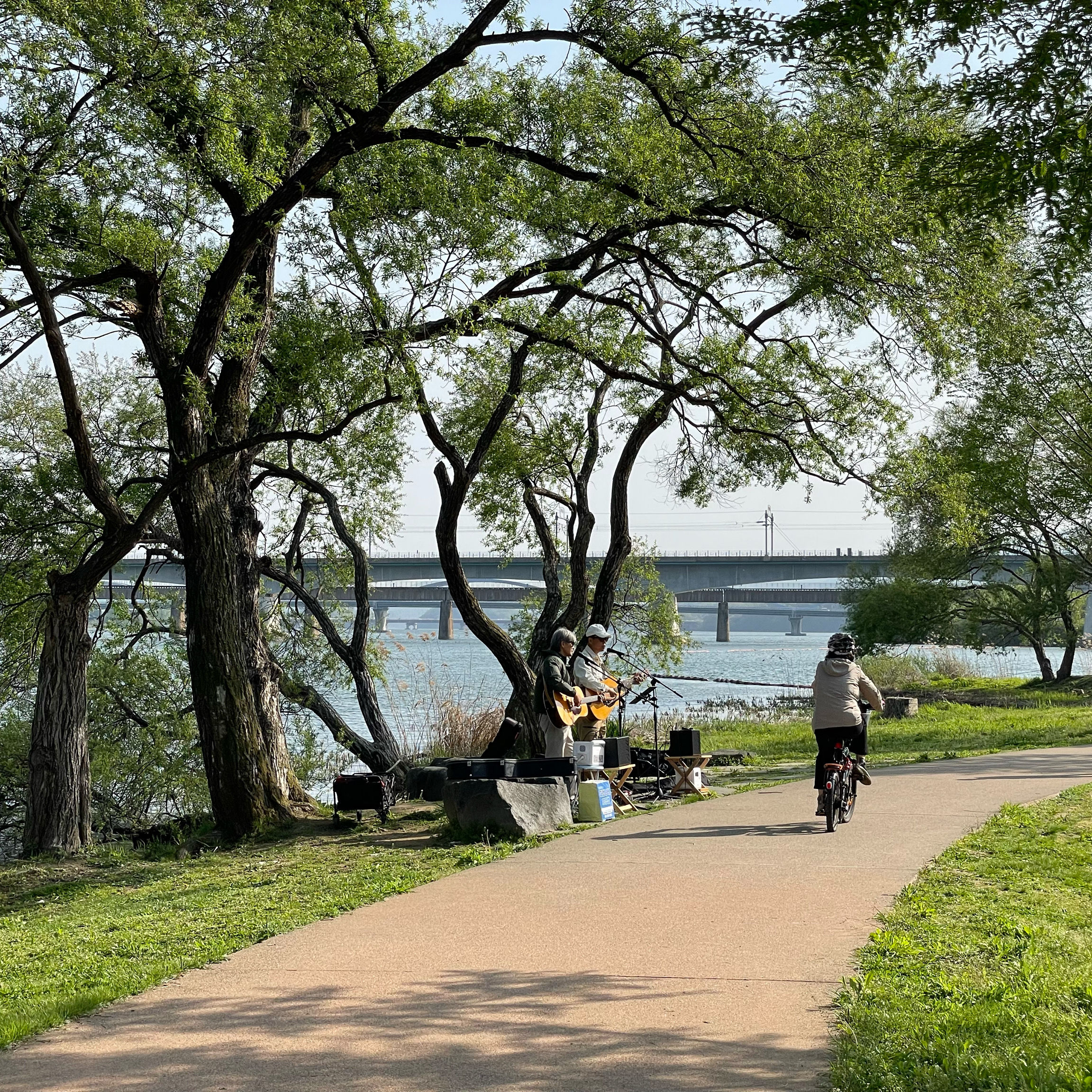 이름처럼 정말 물과 정원이 어우러진 느낌. 걷는 내내 마음이 차분해졌고, 강바람이 살랑살랑 불어와 기분이 참 좋았습니다.
