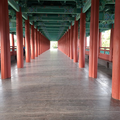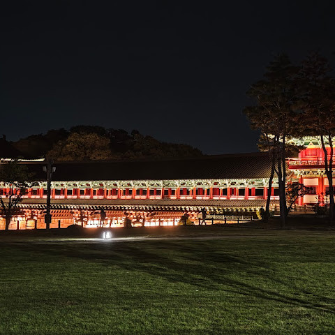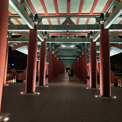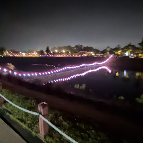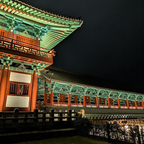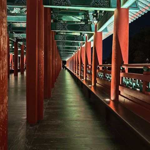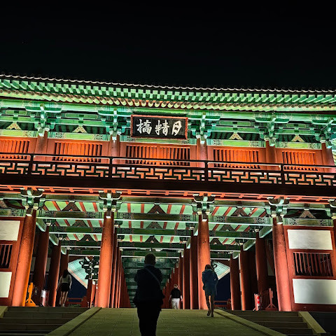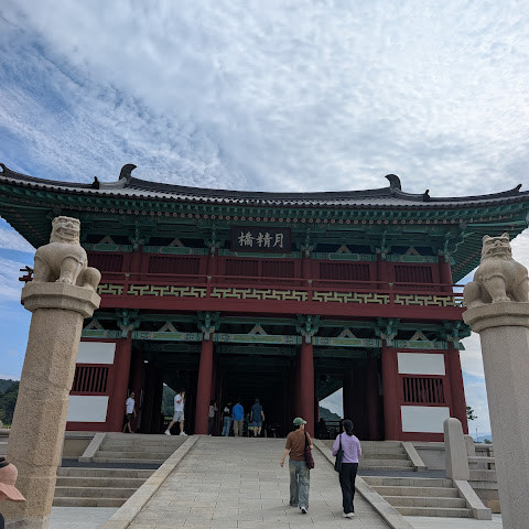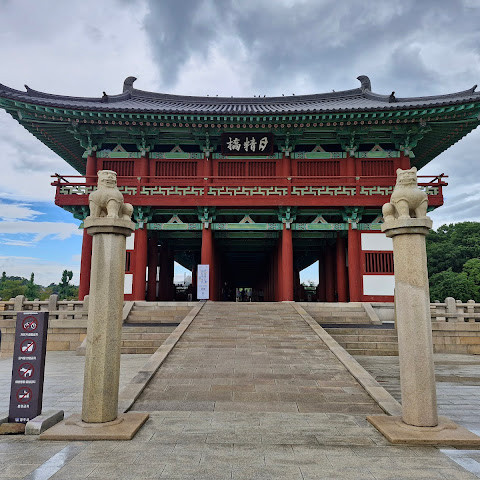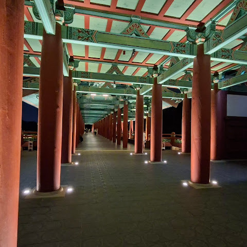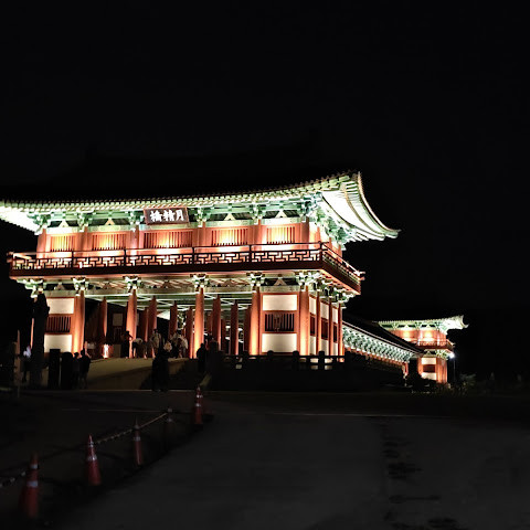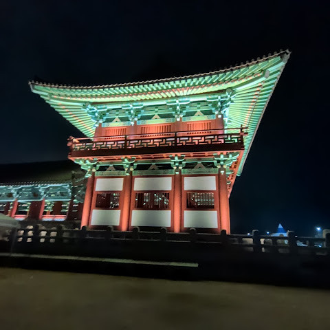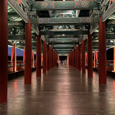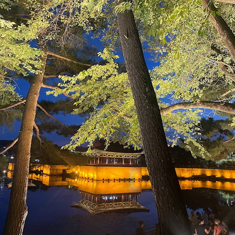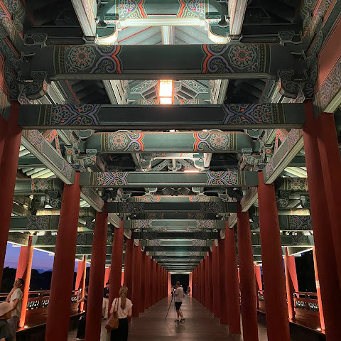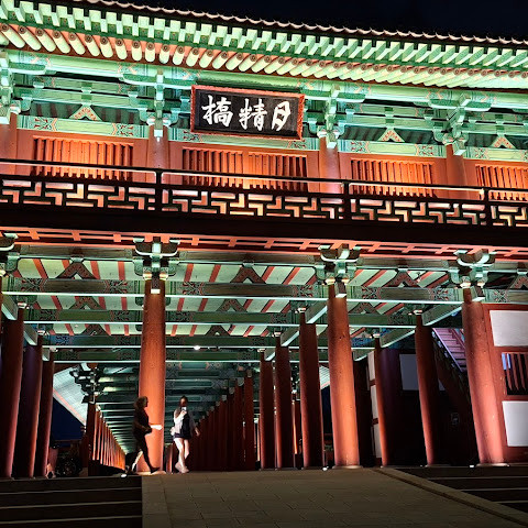 첨성대가 있는 공원 앞에 위치하는 훌륭한 문구가 인상적인 목조 다리. 무료로 다닐 수 있습니다. 가까이서 보면 정교한 제작과 아름다운 조각이 베풀어져 있어 의외로 보이지만 20분이면 충분합니다. 경주의 다른 관광지와 비교하면 사람이 적고 천천히 걸어 다닐 수 있습니다. 밤이 되면 라이트 업되어 낮과는 또 다른 환상적인 분위기를 즐길 수 있습니다. 근처에서 봐도 멀리서 봐도 매우 깨끗하고, 밤의 산책에 딱 맞는 장소입니다.