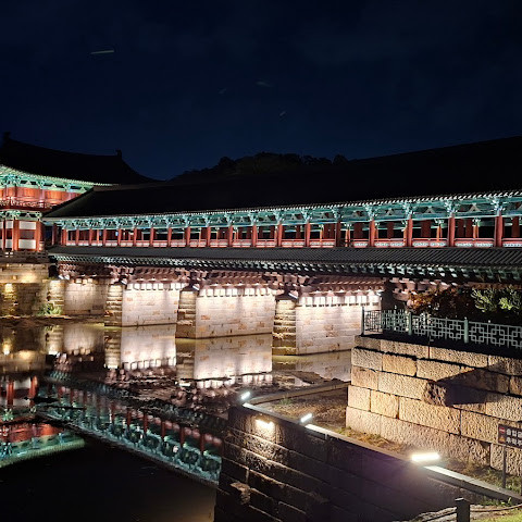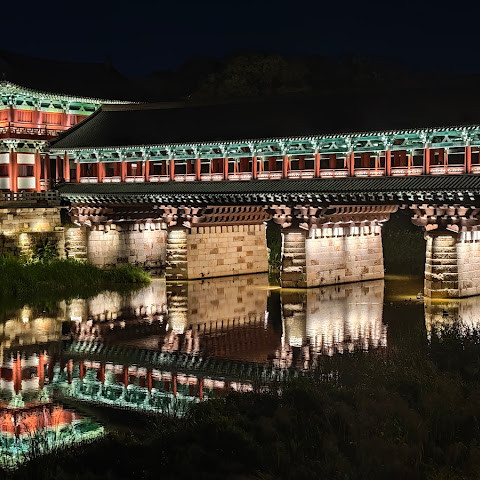 신라 시대에 건설되어 근래에 충실하게 복원된 월정교는 우아함과 조화로움이 돋보이는 걸작입니다. 낮에는 정교한 나무 기둥과 웅장한 외관으로 시선을 사로잡지만, 해 질 녘, 특히 밤에는 더욱 빛을 발합니다. 강물에 반사된 불빛이 매혹적인 분위기를 자아냅니다. 다리를 건너는 산책은 즐겁고 편안하며, 주변에는 경치를 감상하기에 이상적인 보행자 전용 도로와 녹지 공간이 있습니다. 아름다운 사진을 찍기에 가장 좋은 장소 중 하나로, 관광객과 도시에서 로맨틱한 순간을 원하는 사람들 모두에게 완벽한 장소입니다.