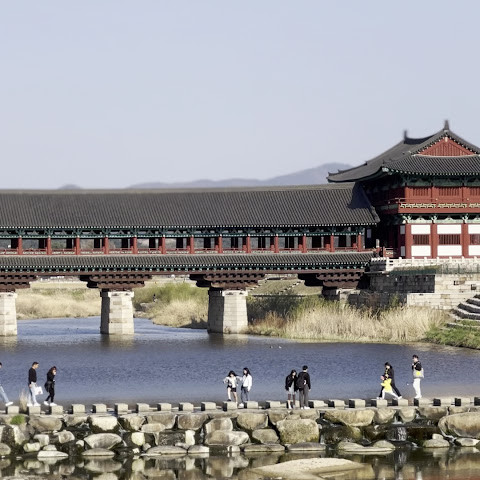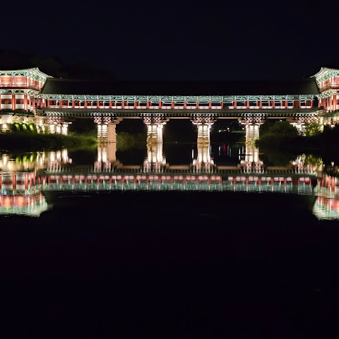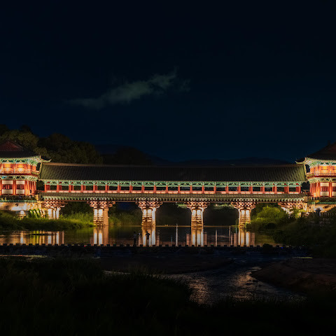 월정교는 신라 시대의 원형을 그대로 재현한 아름다운 다리입니다. 낮과 밤 모두 멋진 사진을 찍을 수 있는 곳입니다.