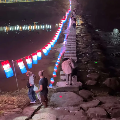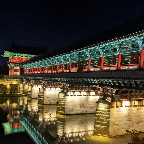 KKDAY 경주 당일 여행의 마지막 방문지는 신라 시대에 지어진 월경교였습니다. 조선 시대에 훼손되었다가 조사 후 복원되었습니다. 두 번의 복원을 거쳐 마침내 본래 모습을 되찾았습니다. 이 다리는 경주의 월성과 남산을 연결합니다. 밤에는 조명이 아름답게 비춰집니다. 개울가에 위치해 있으니 미끄러지지 않도록 발걸음에 주의하세요. 휴대폰 플래시를 사용하여 사람들과 다리의 아름다운 사진을 찍어보세요.
