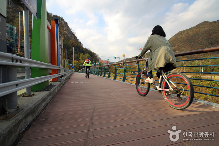대한민국 낭만 여행지 강촌을 여행하는 가장 좋은 방법 중 하나는 자전거를 이용하는 것이다. 북한강 강변 철길 위로 완벽한 자전거도로가 조성되면서 강촌으로 자전거를 타러 가는 사람이 부쩍 늘었다. 경의중앙선 운길산역에서 춘천 의암호까지 이어지는 북한강 자전거길 약 70km 중 강촌 유원지에서 경강교로 약 20km로 이어지는 강촌길은 산과 강이 어우러져 있어 경치를 즐기면서 달리기에 좋다. 강촌에 개설된 자전거도로를 이용해 강촌역 주변 관광지를 둘러볼 수 있고 특히 가을이면 강촌역 부근 억새밭이 장관을 이룬다. 또한, 20km 코스의 끝인 경강교 부근에 대한민국 3대 오토 캠핑장으로 꼽히는 자라섬 오토캠핑장이 있어 자전거에서 캠핑으로 이어지는 낭만을 만끽할 수 있다.