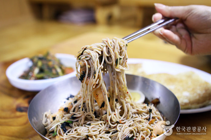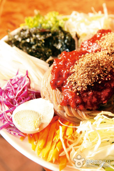 막국수는 메밀의 겉껍질만 벗겨낸 거친 메밀가루로 굵게 뽑아 만든 국수로 메밀막국수라고도 한다. 과거 춘천지방에서 특별한 손님이 찾아오면 대접하던 메밀국수는 6.25 직후 생활고를 해결하기 위해 여기저기서 국수를 만들어 장사하면서 대중화되었다. 강원도 춘천의 소양호 부근은 특히 막국수 거리로 유명하다. 춘천 토박이들도 일부러 찾아오는 맛집이 모여있어 주말은 물론 주중에도 손님들로 북적인다. 메밀막국수는 김치나 동치미 국물에 말아 먹거나 채소와 양념으로 버무려서 식초, 겨자, 육수를 곁들여 먹어도 맛있다. 강원도의 또 다른 토속 음식인 메밀부침이나 메밀전병을 곁들여도 좋다. 소양호 막국수 거리 인근에 의암호의 정취를 만끽할 수 있는 중도관광지와 국내 최초로 애니메이션을 주제로 한 애니메이션박물관이 있어 함께 여행하기에 좋다.