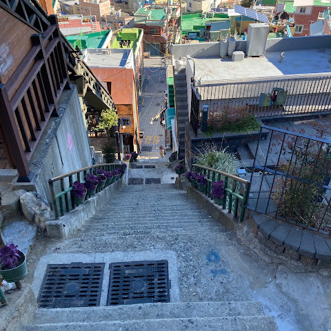 해당 지역을 끝까지 걸어가십시오. 부산의 가장 좋은 점은 현지인들의 삶을 볼 수 있다는 것입니다. 마치 파리의 몽마르트르와 같습니다. 매우 분위기 있고 사랑이 있습니다. 전망은 훌륭합니다. 아아, 많은 것들이 폐쇄되어 그 지역을 복원하려고 시도했지만 얼어 붙은 물체가 많이 있습니다.