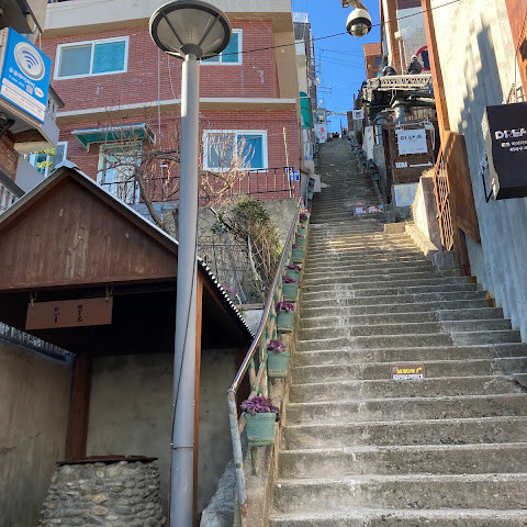 一個寧靜的小社區,適合慢慢散步,拍照、賞景,走到底接著168階梯,未來有電車可以替代,公告寫2025年2月9日開放,上去可以俯瞰釜山港,是一條文青小旅行的路線。