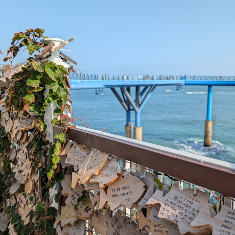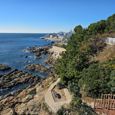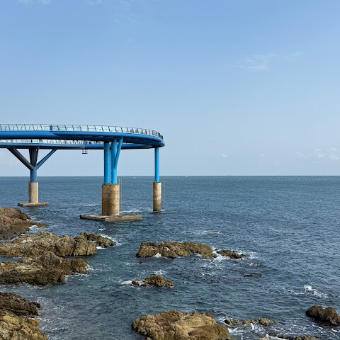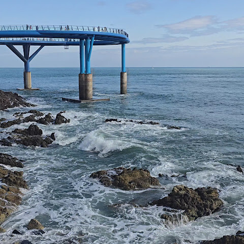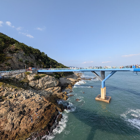 청사포역 근처 스카이워크도 강력 추천합니다. 숨 막힐 듯 아름다운 바다 전망을 감상할 수 있습니다. 가장 스릴 넘치는 경험은 속이 텅 비어 투명하게 드러난 투명 산책로입니다. 주변에서 들려오는 비명 소리에 용기를 시험해 보세요!