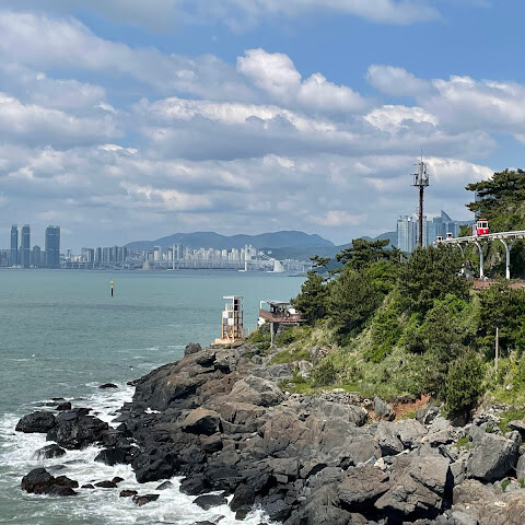 경치 좋고 투명한 바다 전망의 스카이워크는 강풍과 비로 인해 일시적으로 폐쇄됩니다. 해안 열차나 캡슐 열차를 이용하시거나, 해운대 해수욕장에서 도보로 약 1시간 정도 걸어가시면 됩니다.