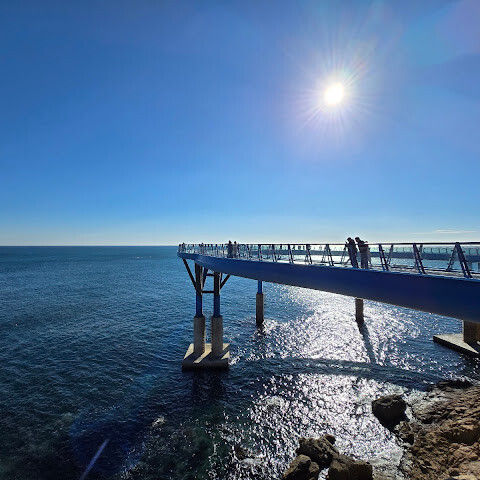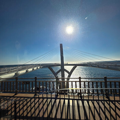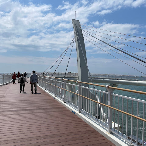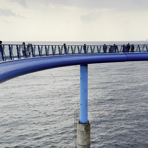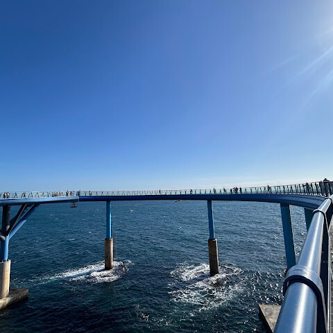 바다 위 산책로는 고소공포증이 있는 분들에게 아래를 내려다보기 좋은 곳입니다. 고소공포증을 조금이나마 덜어드리려면 철제 기둥 위를 걸어보는 걸 추천합니다. 발밑에서 춤추는 파도를 보는 게 정말 즐겁습니다.