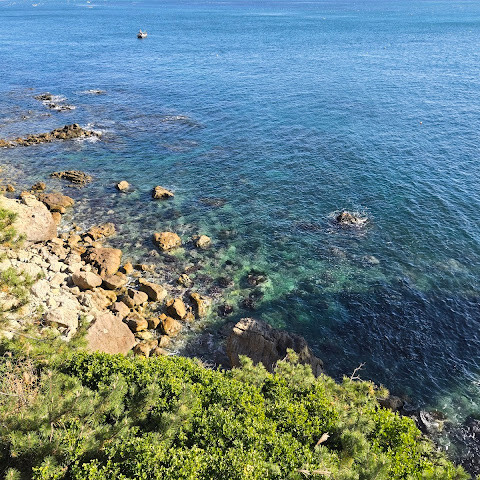 오솔길을 따라 걷다 보면 이렇게 운치 있는 곳에 들어서는 기분이 좋습니다. 바람과 파도 소리. 입장료는 무료입니다. 화창한 날에는 정말 아름답습니다. 경치는 정말 장관입니다. 바람을 맞으며 걷다 보면 소나무 아래 고요함으로 돌아가고 싶어집니다. 바닷물은 그야말로 청록색입니다. 안전할 것 같습니다. 모자는 꼭 쓰세요.