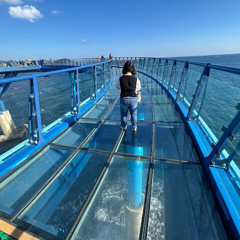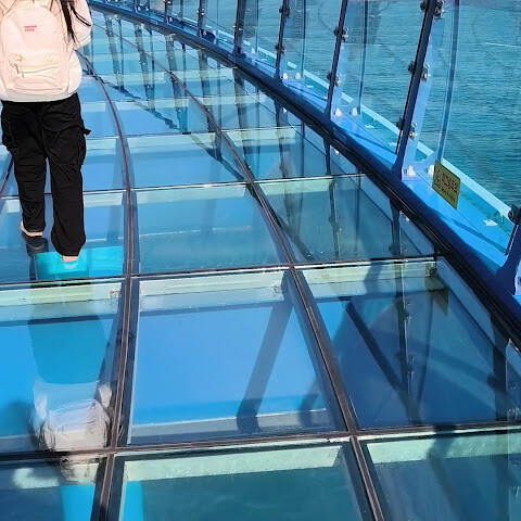 여기 정말 좋아요!! 캡슐 열차 타기 전에 꼭 산책해 보세요. 바로 아래 바다가 보이는데, 유리 위를 걸으며 사람들의 겁먹은 반응을 보는 재미가 쏠쏠해요 😍 (게다가 입장료도 무료예요!)