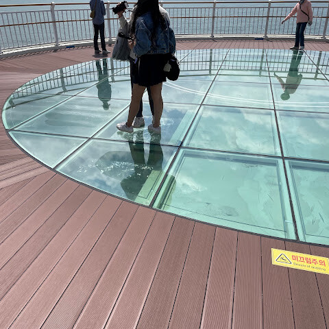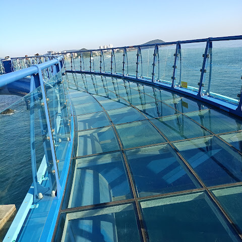 해운대 캡슐 트레인과 함께 방문할 수 있는 명소입니다. 투명한 다리 갑판은 스릴 만점입니다.