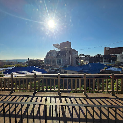 청사포역에서 내려 슬램덩크 건널목 사진을 찍은 후, 나무 판자 길을 따라 10분 정도 걸으면 해월전망대가 나옵니다. 이곳에서는 티켓이나 신발 커버가 필요 없으며, 자유롭게 드나들 수 있고 큰 원을 한 바퀴 돌 수 있습니다. 넓은 투명 유리 구간이 있어 다리가 후들거리고 바람이 매우 강해 마치 미친 여자처럼 보이지만, 정말 아름답습니다. 이 명소를 놓치지 마세요. 사진을 찍는 느낌이 하늘과 매우 비슷합니다. 사진 촬영 후 청사포역으로 돌아와 송정역으로 가는 해안 열차로 환승하세요.