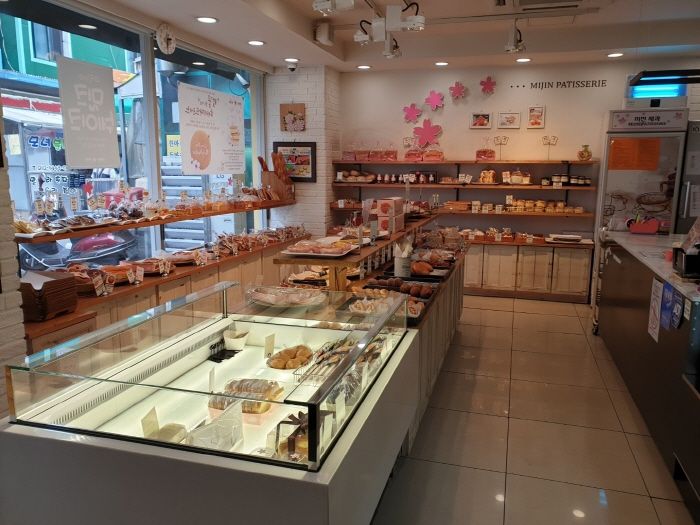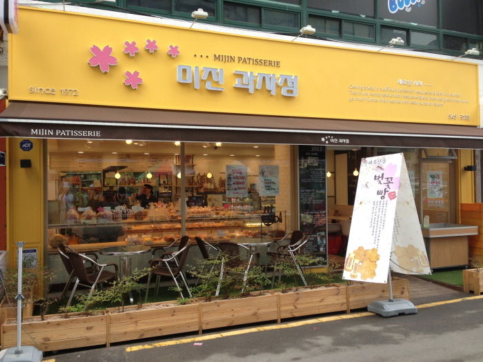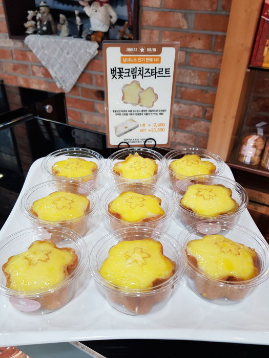 진해 군항제에 다녀온 사람이라면 여행 선물로 진해 특산품인 벚꽃 빵을 추천할 것이다. 미진과자점은 42년째 가업을 이어오며 진해에서 가장 오래된 빵집으로 알려져 있는데, ‘진해제과’와 벚꽃 빵, 벚꽃 롤, 벚꽃 꿀 마들렌느 등을 공동 개발하여 독창적인 상품을 선보이고 있다. 벚꽃 빵은 실제 벚꽃 진액과 벚꽃 앙금을 주원료로 만들었기 때문에, 벚꽃 모양의 빵을 한 입 깨어 물으면 핑크색 앙금과 함께 풍부한 향과 맛을 즐길 수 있다.