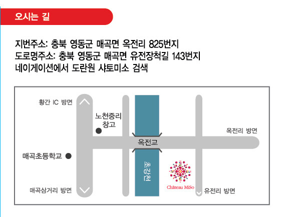 충북 영동에 있는 도란원 샤토미소는 캠벨포도를 직접 재배하고 있는 농가형 와이너리다. 캠벨은 한국에서 가장 많이 재배되는 품종으로, 이곳에서는 우리 입맛에 맞는 신토불이 와인, 한국 고유의 와인을 만들어 내고 있다. 2009년 와이너리를 준공하였고, 이후 체험장, 와이너리 증축을 거쳐 2019년 ‘찾아가는 양조장’에 선정되었다. 도란원 샤토미소에서는 샤토미소 와인을 이용한 칵테일 만들기, 나만의 와인잔 꾸미기 등의 체험을 할 수 있다. 충북 영동은 포도 농사를 위한 환경 조건이 잘 갖추어져 있어, 와이너리를 쉽게 찾아볼 수 있다. 영동 와인터널을 비롯해 40여 농가 와이너리(포도주 양조장)를 체험하는 농가체험형 와이너리 투어를 선보이고 있으니, 주변 와이너리를 함께 방문하면 특별한 여행의 경험이 될 것이다.