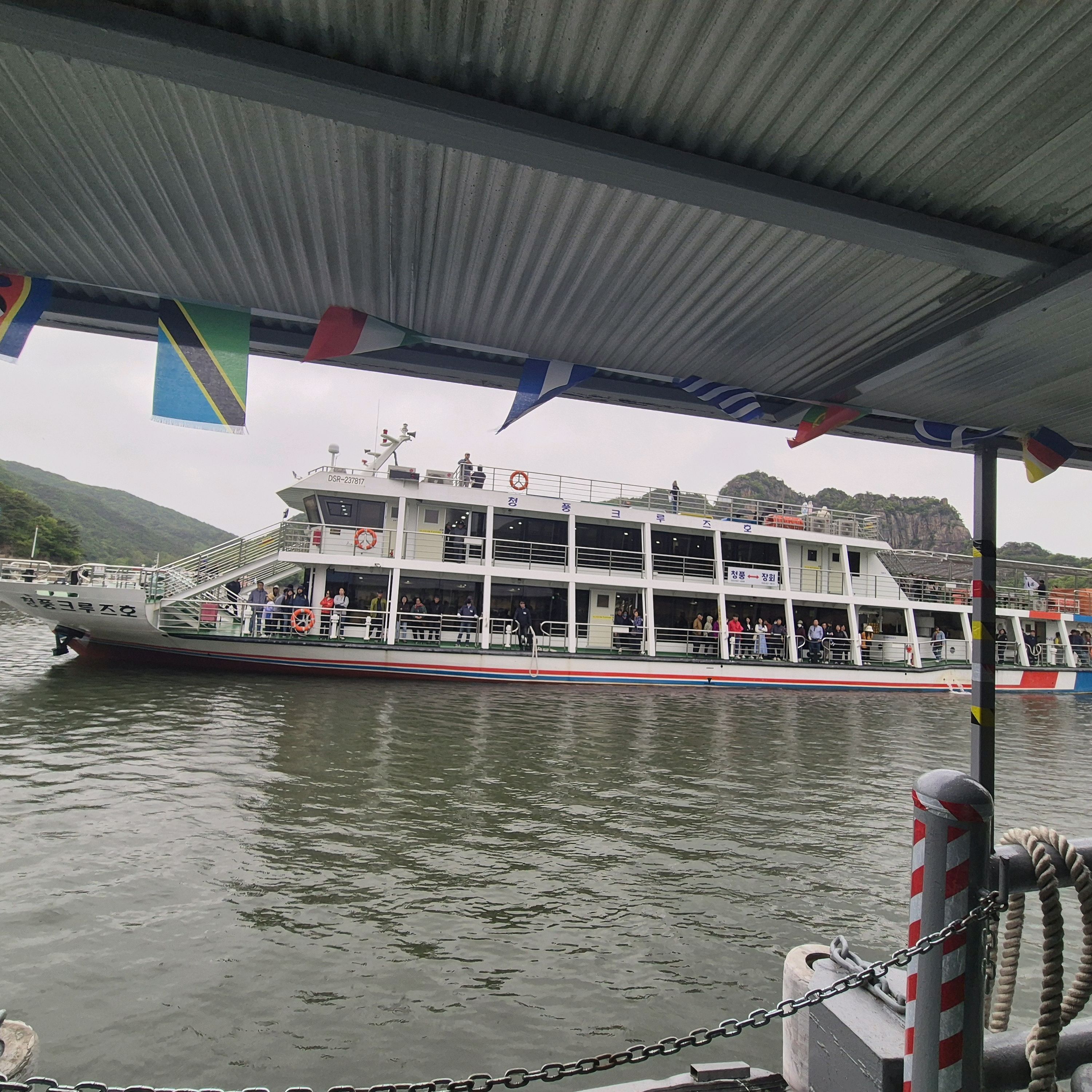 유람선 승선했는데 내부도 청결하고 탑승할려고 할때 어서오세요~~ 라며 따뜻한 인사도 건네주시고 내부도 시원해서 다름 유람선 탈때보다 덥지않아서 좋았는데 승선하러 갈때 경사가 심해서 다리힘 없는 어르신들은 탑승 불가입니다 휠체어도 불가구요.. 비올때 눈올때 경사때문에 조심조심하셔야 합니다