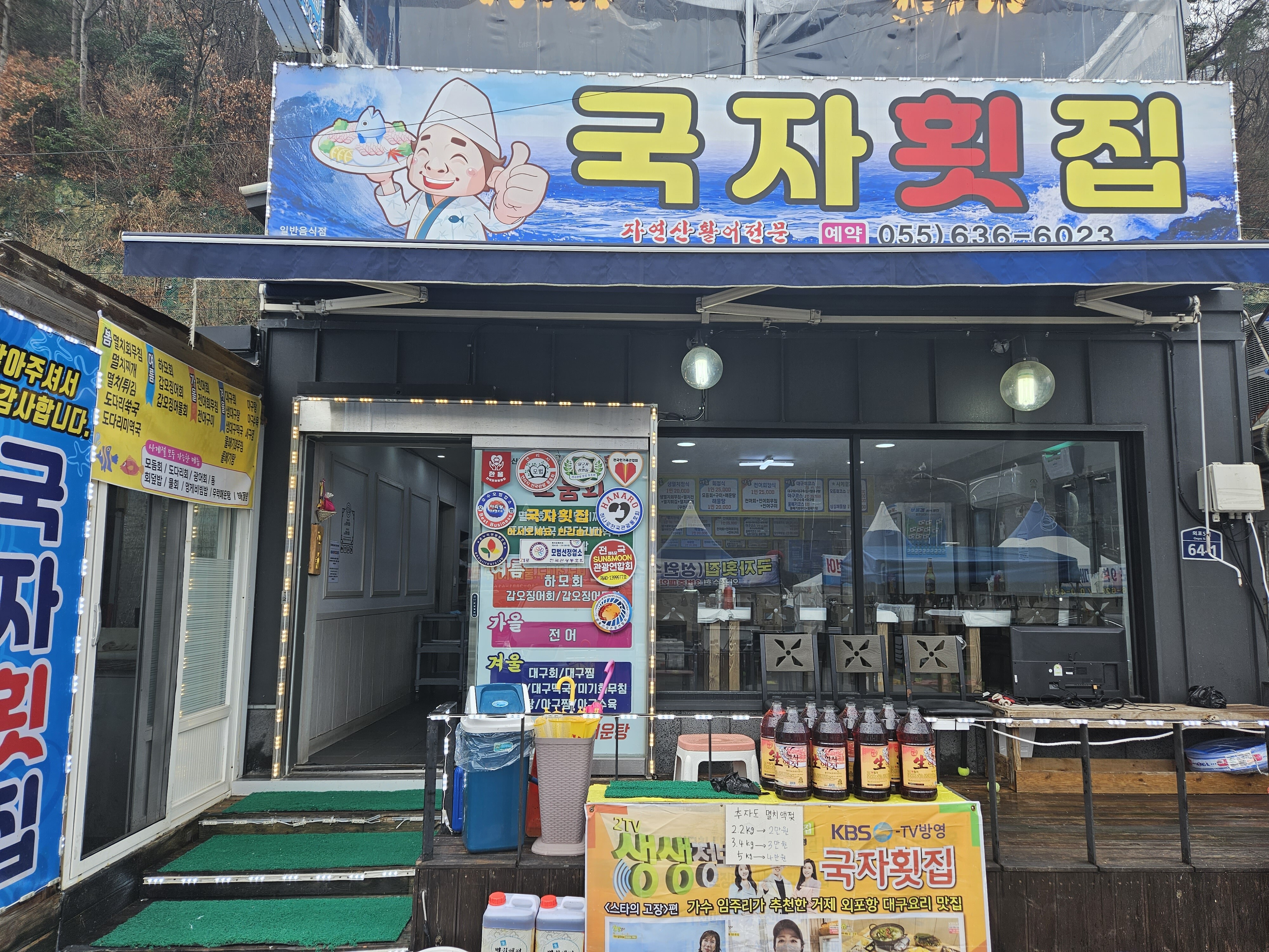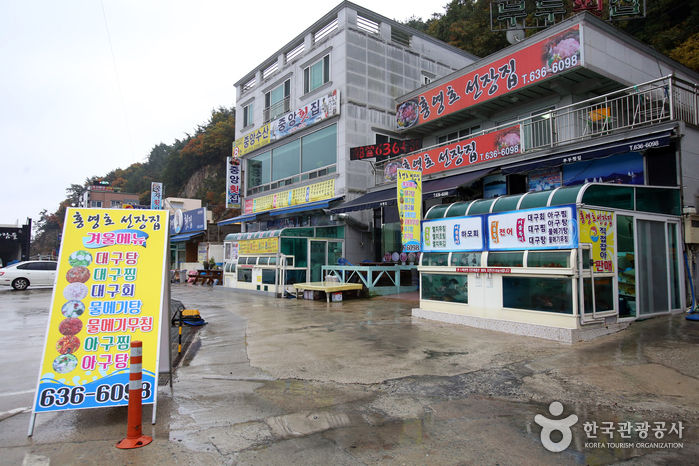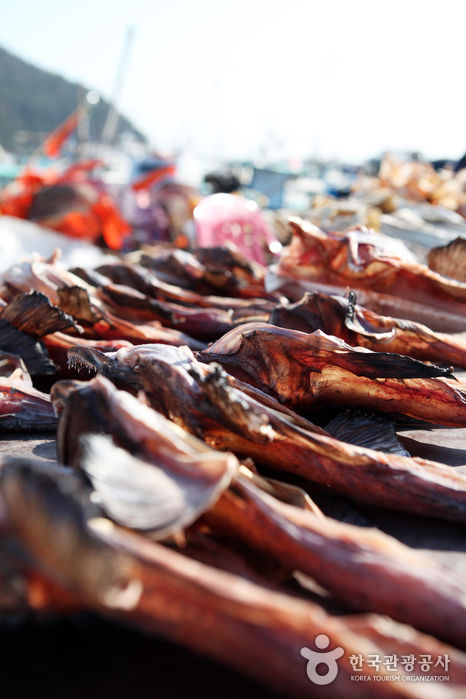 외포리 대구탕거리는 외포항 포구에 있는 식당 10여 곳이 늘어선 거리를 말한다. ‘눈 본 대구 비 본 청어’라는 속담처럼 대구는 산란기 기간과 겹치는 12월부터 이듬해 2월까지가 제철이며, 외포리는 이때 조업과 위판을 할 수 있는 유일한 곳이다. 따라서 이곳에서 신선한 제철 대구를 쉽게 즐길 수 있다.이곳의 대구탕은 뽀얀 국물로 진하고 구수한 맛이 나며, 느끼하지 않고 속을 개운하게 하는 음식으로 해장에 특히 좋다. 허영만 작가의 유명 음식 만화 "식객"에서 소개되었고, 김영삼 대통령 생가, 옥포대첩 기념관 등 여러 관광명소와 멀지 않아 많은 관광객이 이곳을 찾고 있다.