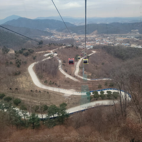 케이블카는 좀 느렸지만, 적어도 정상까지 걸어갈 필요는 없었죠.