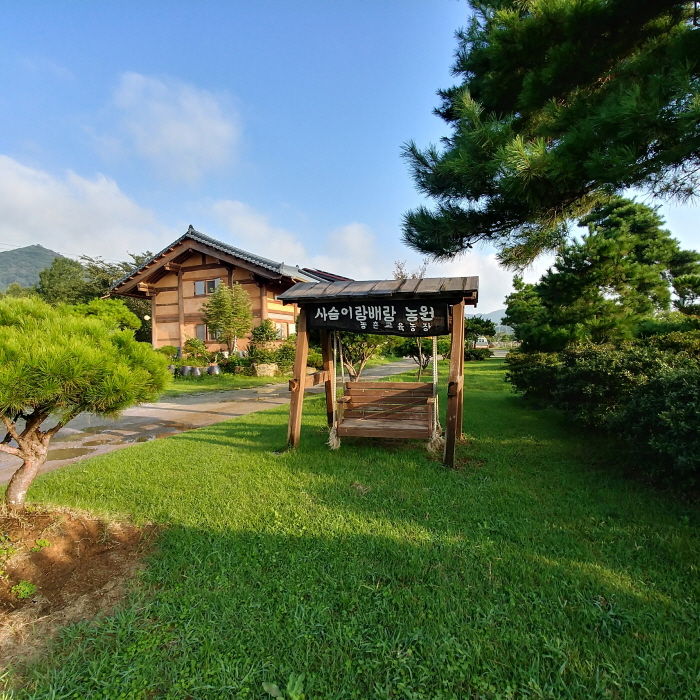 한옥 주변으로 옛 시골 생활을 느껴볼 수 있는 생활소품이 많다. 가마솥이 걸린 아궁이에서는 군불 때는 체험이 가능하고 화로와 맷돌 등도 직접 만져보고 사용할 수 있다. 한옥펜션은 객실 3개와 주방, 화장실을 두루 갖춘 원룸 구조라 이용하는 데 편리하며 하루 한 팀만 머물 수 있다. 사슴이장을 겸하고 있어 사계절 다양한 체험 프로그램을 운영한다. 투호, 제기차기, 윷놀이 등 전통놀이와 동물 먹이주기는 무료로 할 수 있다. 제철 과일로 만드는 아이스크림과 배를 이용한 요리 체험, 도자기 만들기 체험 등은 1인 1만 원의 비용으로 가능하다. 계절별 체험으로 봄 배꽃 솎기, 여름 매실과 킹베리 따기, 가을 배와 감 따기, 겨울 눈썰매 체험이 있어 아이와 체험학습 삼아 방문하기 좋다. 별도의 예약 시스템이 없고, 전화 예약(010-3642-7069)만 받는다.