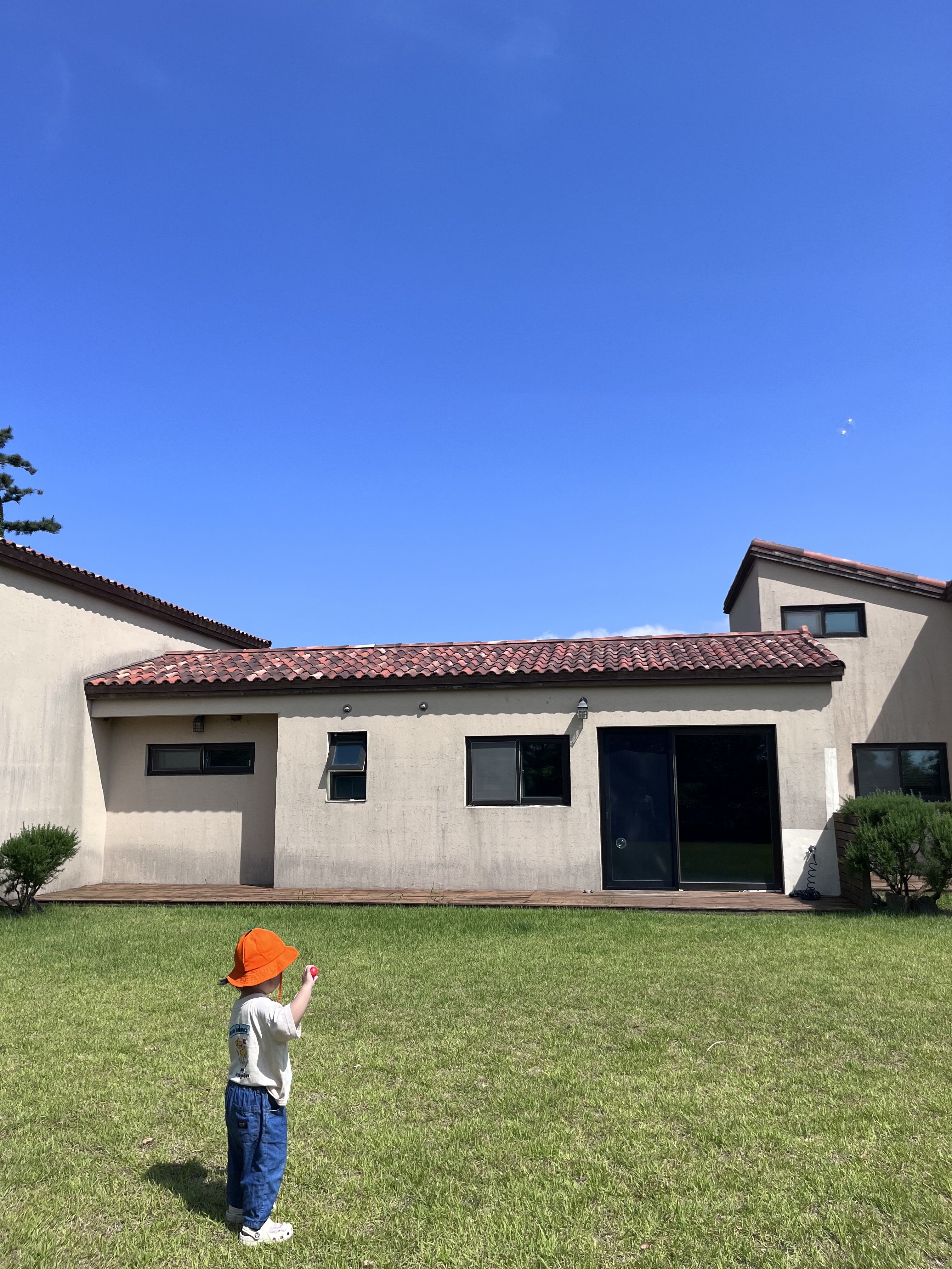 3박 너무 잘 묵다 갑니다~저도 추천받아서 오게 된 곳인데 지인들에게 추천해주고 싶을만큼 좋았던 곳이에요. 넓은 잔디밭. 모래놀이터. 귀엽고 순한 고양이들. 깔끔한 놀이방. 맛있는 조식(3박 내내 다 다른반찬들!!!)