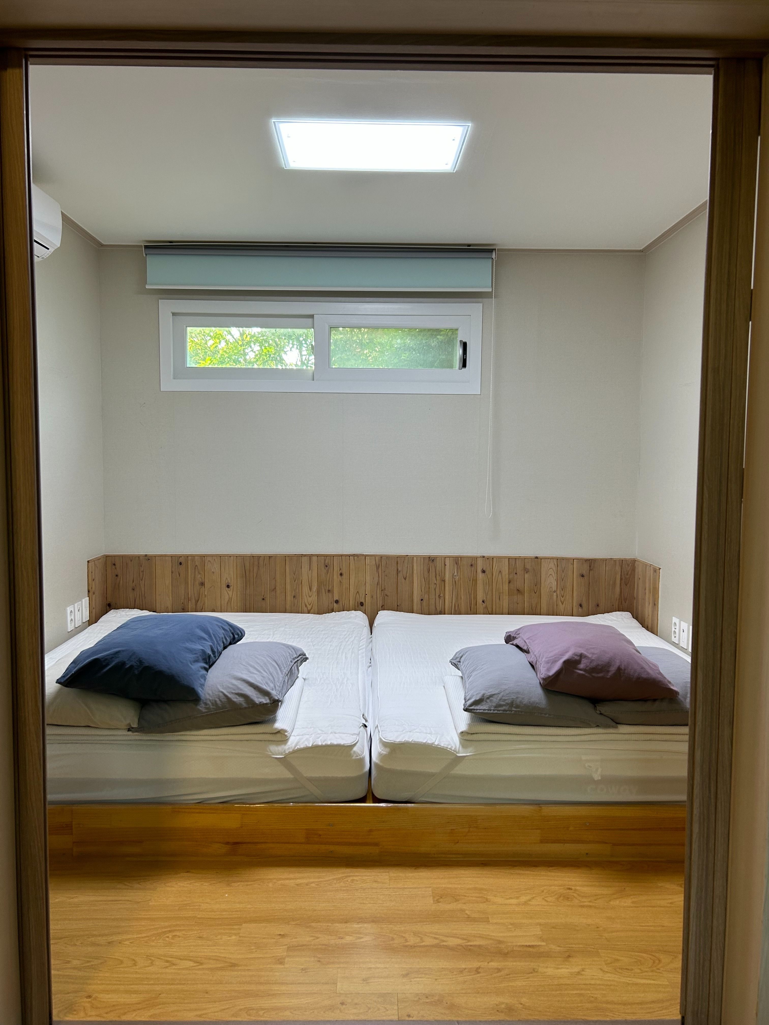 방은 하나인데 퀸매트 2개여서 4명이 사용하기 낙낙하니 좋아요 거실도 넓고 앞마당이 보여 탁트여 좋습니다 놀러갈만한곳,맛집,아이병원까지 추천해주셔서 여행 잘하고 왔네요 남편도 여태 여행다닌 숙소중에 제일이었다고^^알아보고 예약한 제가 더 뿌듯했습니다 감사합니다🙏