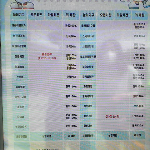 초등학생들 오기에는 좋습니다. 미취학 아동은 키제한 때문에 타지못하는 기구가 많아서 아쉽네요. 사람이 많아서 대기시간이 좀 많긴 한데 에버랜드 생각하면 버틸만 합니다.