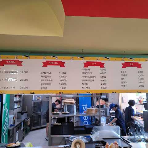 주말엔 학원에서 많이들 놀러오니 북적북적하네요. 그늘이 별로 없어요~테이블은 가방만 놔두고 자리 맡아두고~민폐들 많네요. 아이들 놀기엔 양호합니다. 그리고 돈까스 맛 없어요