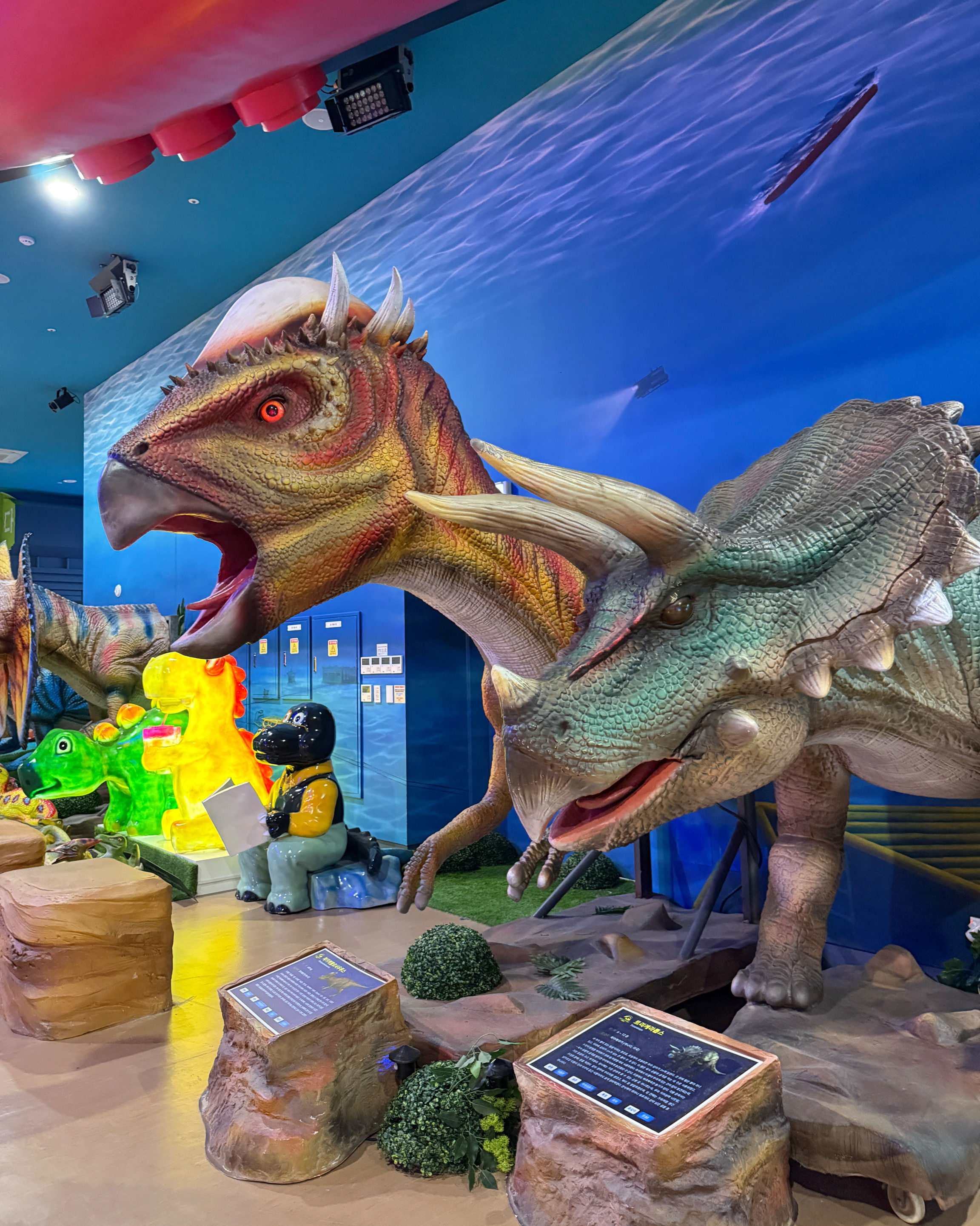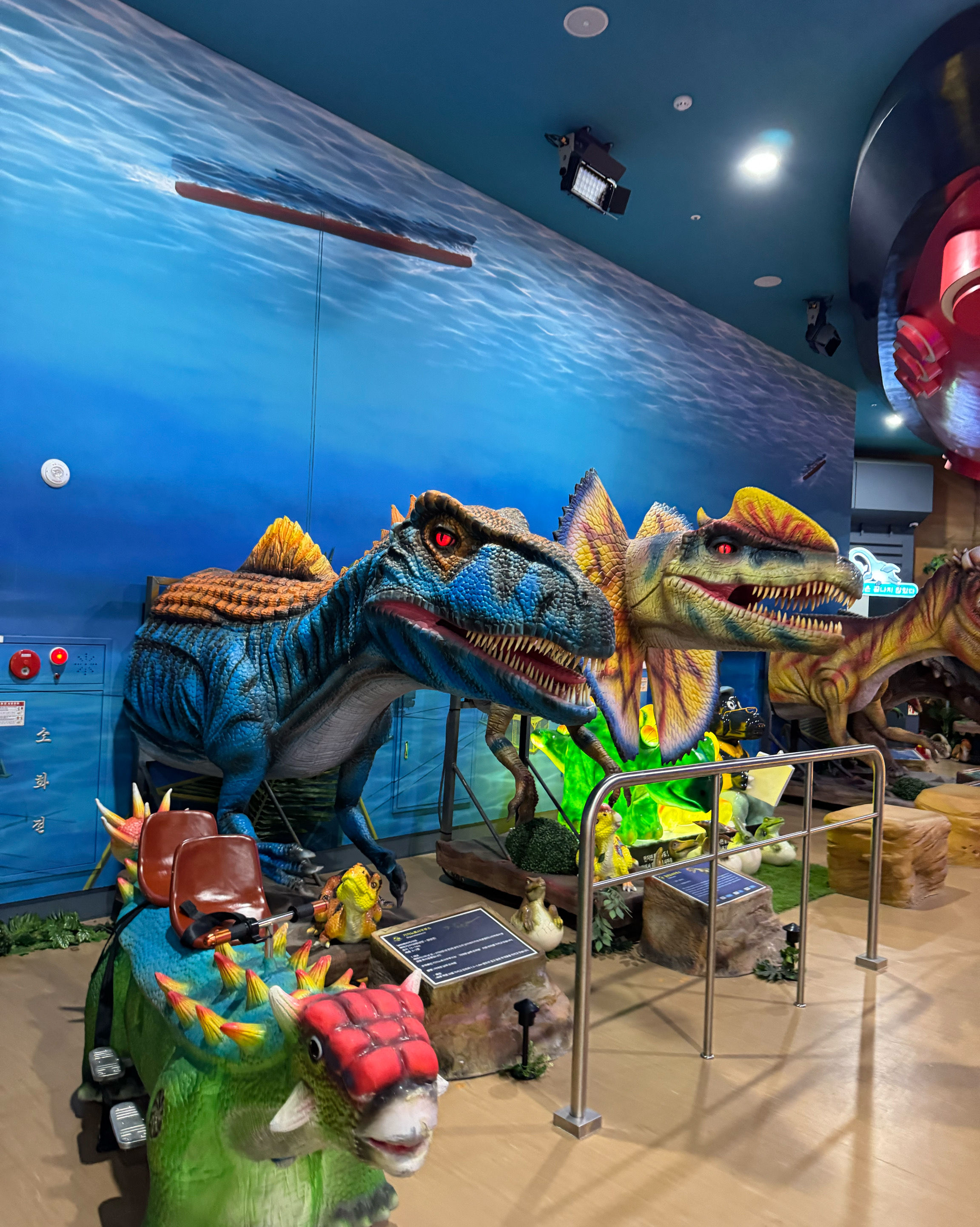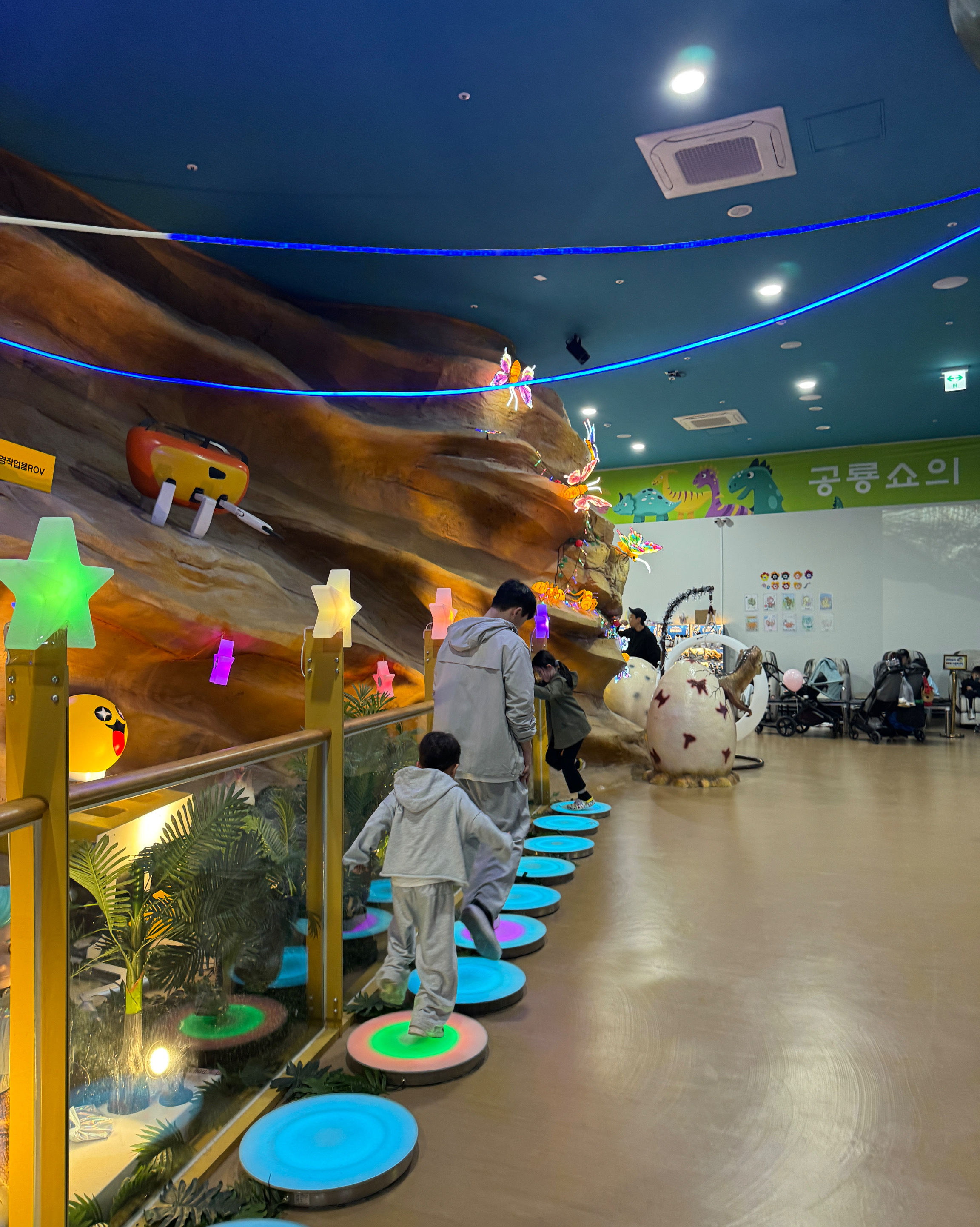 공룡들이 진짜 살아움직이는것 같아 아이들이 너무 좋아했어요! 중간에는 아이들이 잠시나마 앉아 색칠하는 공간이 있어 쉬었다 가기 좋았어요~