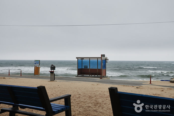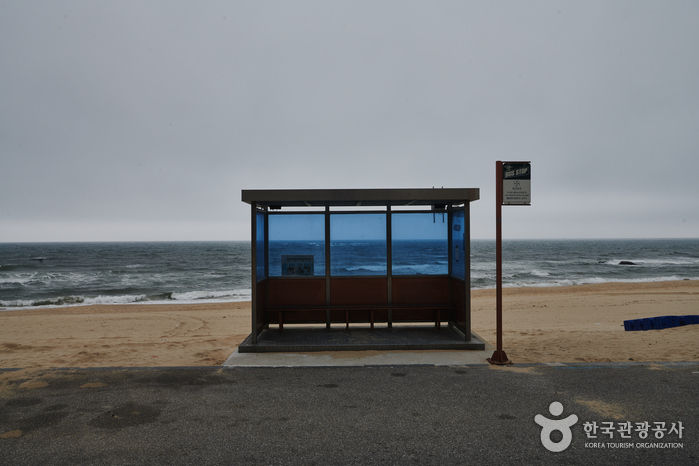 K-POP 최초로 미국 빌보드 음반차트 1위를 기록한 방탄소년단의 앨범자켓 사진 속에서 등장한 바닷가 버스 정류장이다. 촬영 당시 임시로 만들었다가 철거된 것을 관광객들을 위한 포토존으로 재현해 놓았다. 이미 방탄소년단의 국내외 팬들 사이에선 폭발적인 반응을 얻고 있으며, 주문진해변의 이색 볼거리로 떠오르고 있다. [출처:강릉시청]
