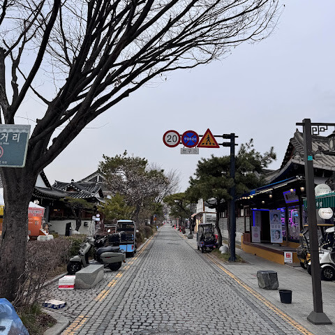 During my trip to Jeonju, I visited the famous Hanok Village — a must-see spot! Parking can be quite difficult, so I recommend using public transportation. There are so many great restaurants, fun things to see and do, and it’s a perfect place for taking photos. When you visit Gyeonggijeon Shrine, make sure to wear a hanbok for beautiful pictures!