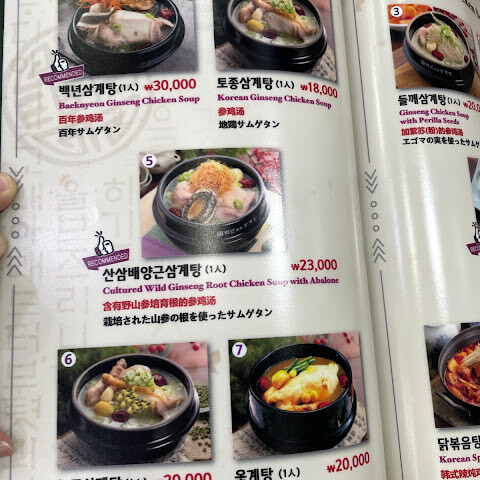 인삼닭탕은 맛있었고 양도 딱 적당했어요. 100년 된 인삼인데도 맛이 전혀 안 느껴졌어요. 전복도 부드럽고 맛있었고요. 전체적으로 아주 만족스러운 식사였습니다.