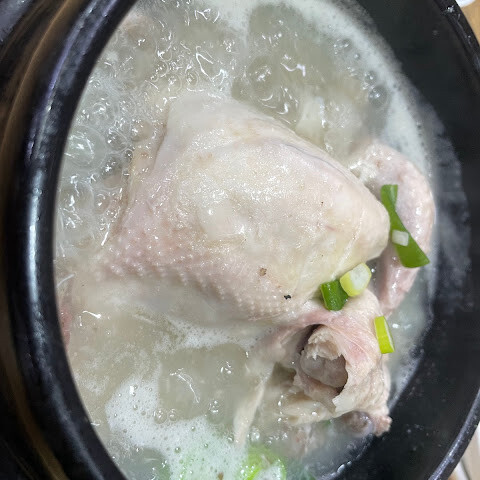 오늘 저녁 한국에서 먹은 첫 식사였는데, 추운 겨울 날씨에 정말 따뜻하고 포근한 맛이었어요. 국물은 진하고 풍미가 깊었는데, 한국 궁중 요리 드라마에서 봤던 찹쌀, 대추, 인삼을 넣고 속을 채운 닭 요리가 떠올랐어요. 맑고 하얀 닭고기 수프와도 환상의 궁합이었어요. 정말 맛있었어요!