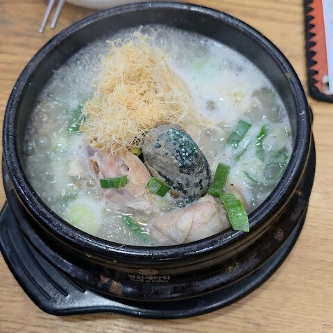 투어 그룹과 함께 갔는데, 인삼닭이 맛있었어요. 고기는 엄청 부드러웠고, 육수는 우유 맛이 강하고 맛도 균형 잡혀 있었어요.