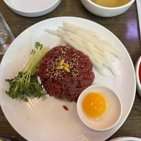 광장시장에서 육회에 진심이신것같았어요!! 비록 육회보단 불고기를 주문했지만 불고기 진짜 맛있더라구요~ 고기도 야들야들하고 간도 담백하게 되어있어서 밥한공기 뚝딱했네요 ㅎㅎ 육회비빔밥도 육회를 엄청 넉넉히 주세요! 매장도 엄청 넓어서 단체회식하기도 좋겠더라구요! 무엇보다 미모의 사장님이 진짜 짱친절해요!!ㅎ