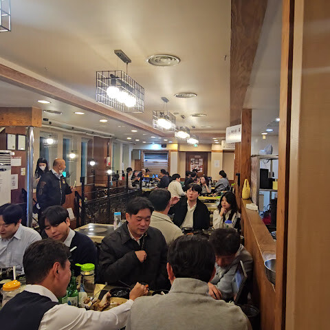 연휴 첫날인 11시 40분쯤 방문했는데, 아직 빈 테이블이 많았어요 (1층에는 아무도 없었지만, 2층에는 빈 테이블이 있었어요). 12시 30분쯤 되니 1층과 2층이 거의 꽉 찼어요!
