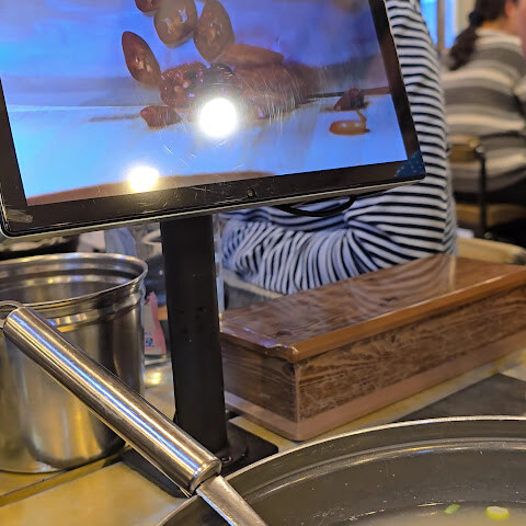 각 테이블에는 언어 선택이 가능한 태블릿 주문기가 있어서 직접 주문하실 수 있습니다. 서비스 직원분들도 매우 열정적입니다. 그들 중 일부는 중국어를 할 줄 알고 질문이나 참고자료가 필요할 때 도와줄 수 있습니다. 결국 우리는 돼지 족발(반은 오리지널, 반은 매운맛) 한 접시, 매운 소바 한 접시, 음료 한 병(대만산 마블 소다 맛)이 포함된 세트 메뉴를 주문하기로 했습니다.