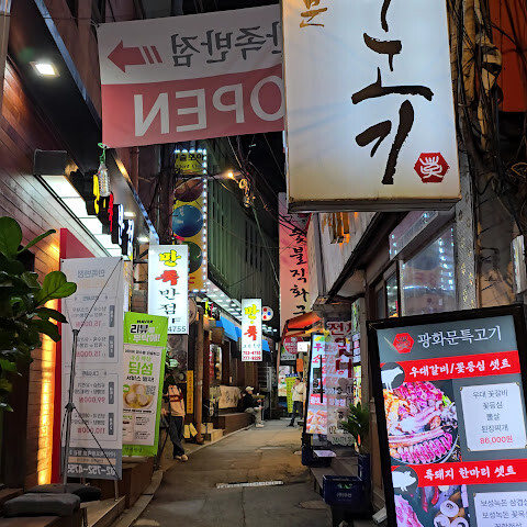 Google Map이라면 세종델로를 따라 보이지만 소소문로에서 들어오는 골목의 밀집입니다. NAVER지도라면 알겠지만 Google Map은 골목이 표시되지 않기 때문에 한국에서는 도움이 되지 않습니다.