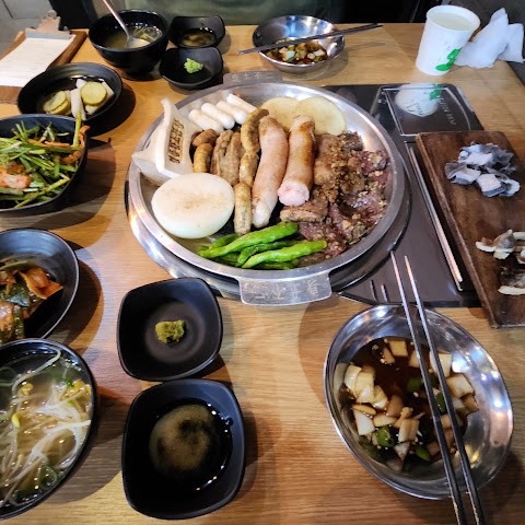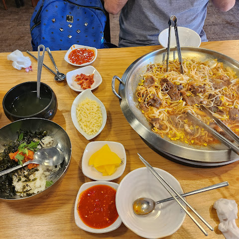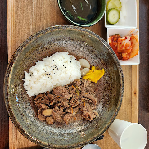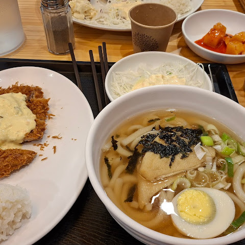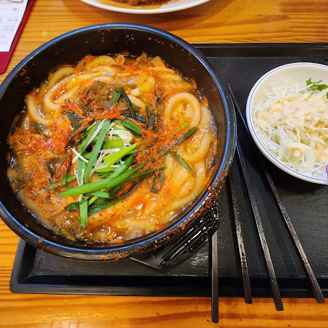 현지 음식을 맛볼 수 있는 아주 작은 곳. 완벽하게 익은 돈까스, 라면과 냉면이 맛있습니다. 많은 현지인들이 이곳에서 점심을 먹는 것 같습니다.