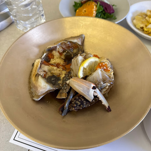 신선도의 일관성 부족으로 -2점. 하지만 그 외에는 훌륭했습니다. 액체와 버터의 경계에 있는 생게살의 반짝이는 조각들. 서빙된 지 몇 분 만에 사라졌습니다.