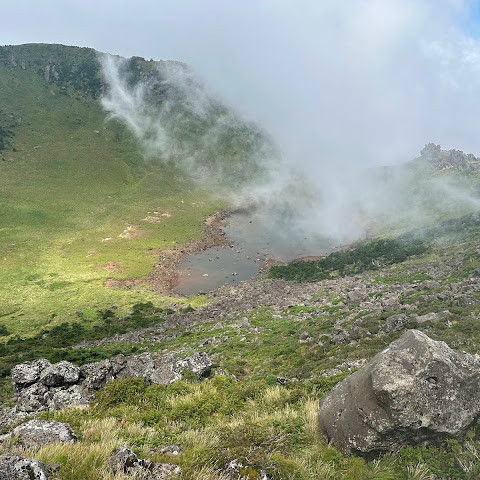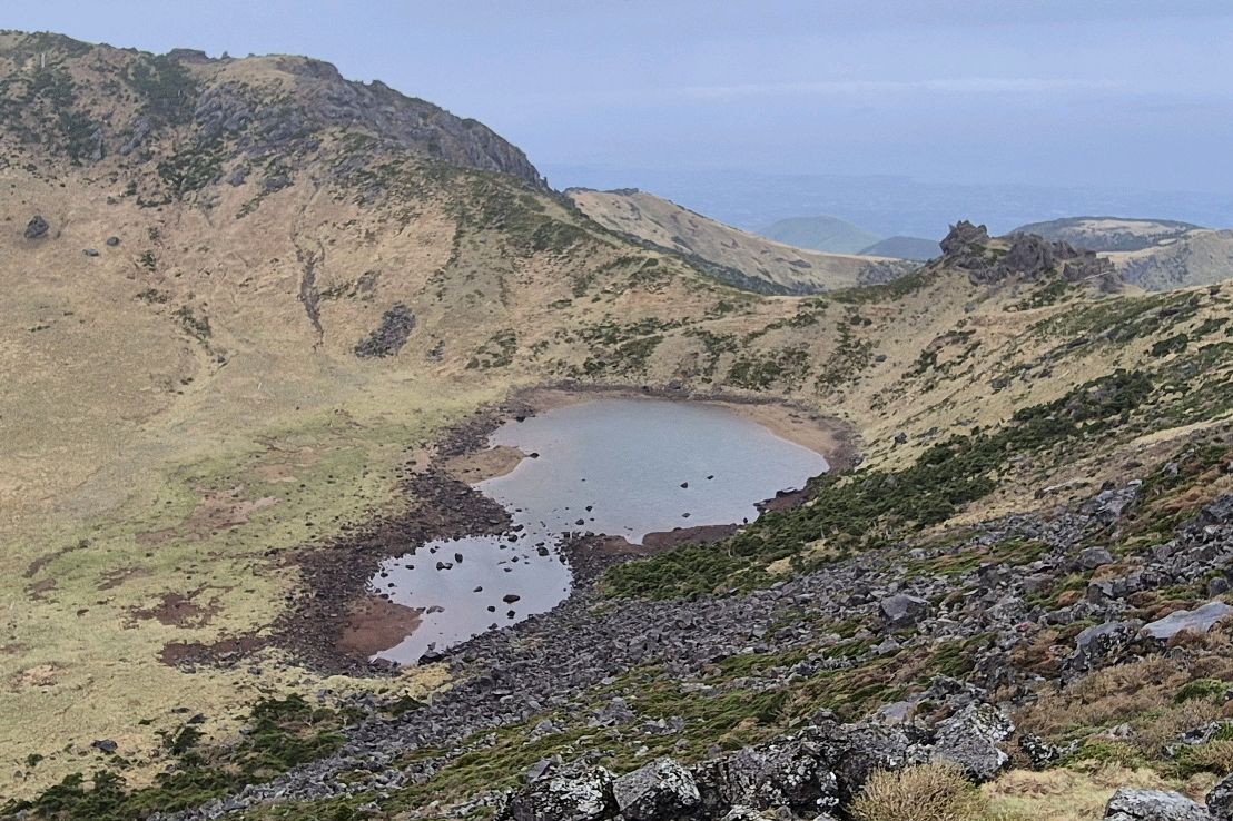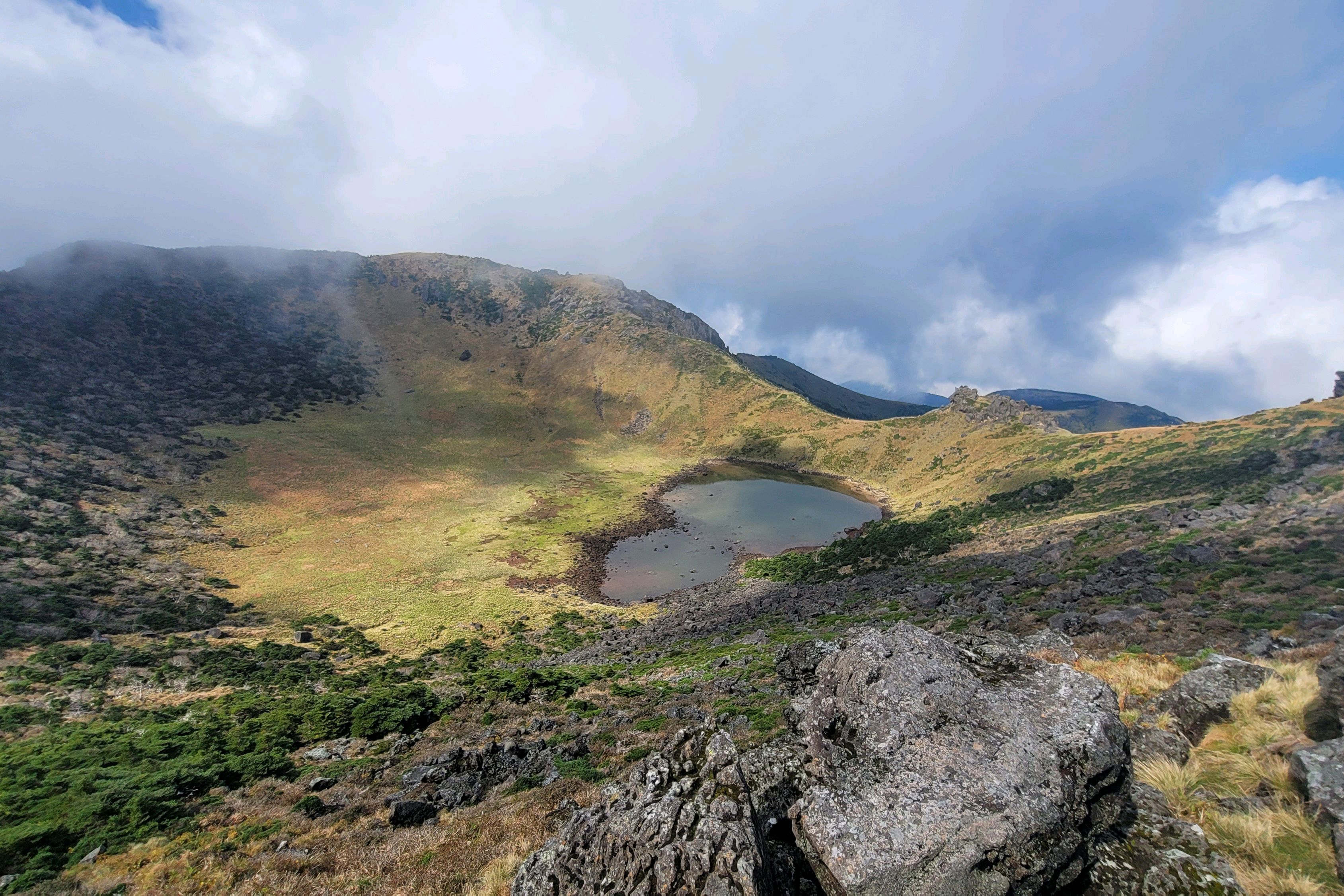백록담에 물 고인거 보기가 쉽지 않다던데 운이 좋았습니다🤩 중국인 관광객들 때문에 조용한 산행은 어려웠지만.. 그래도 보람있었습니다😂