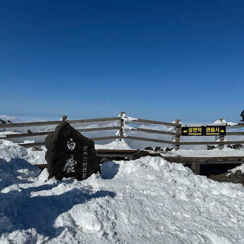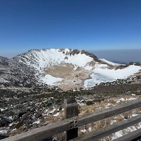 날씨가 중요합니다. 처음에는 강풍이라 부분통제로 정상 탐방이 불가했고 두번째는 날씨가 흐리고 심한 안개와 바람, 진눈깨비로 정상에서 표지석만 겨우 보이고 아무것도 보이지 않았어요. 날씨 좋은 날 골라 세번째 등반에 드디어 백록담 실물 영접했네요. 힘들게 올라간 보람이 있는 멋진 뷰입니다. 성판악으로 등반했습니다. 미리 탐방 예약해야하고 주차장은 새벽6시면 만차됩니다. 탐방 예약은 횟수 제한 있어요. 일주일에 한번 탐방 예약 가능해요. 등반인증서도 발급 받을 수 있습니다.