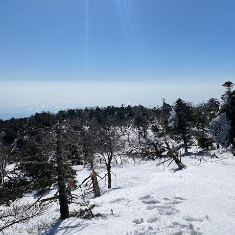 평소에 운동을 하기는 하는데 눈쌓인 산을 이동하는게 쉽지 않네요 올라갈때 쉬고 밥먹는 시간 포함해서 5시간 정도 걸리고 내려올때 3시간 30분 정도 걸렸어요