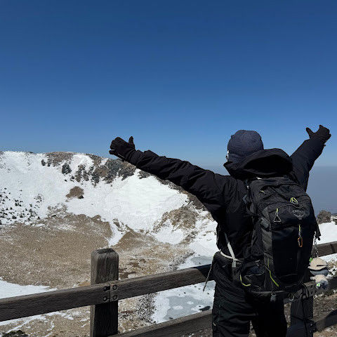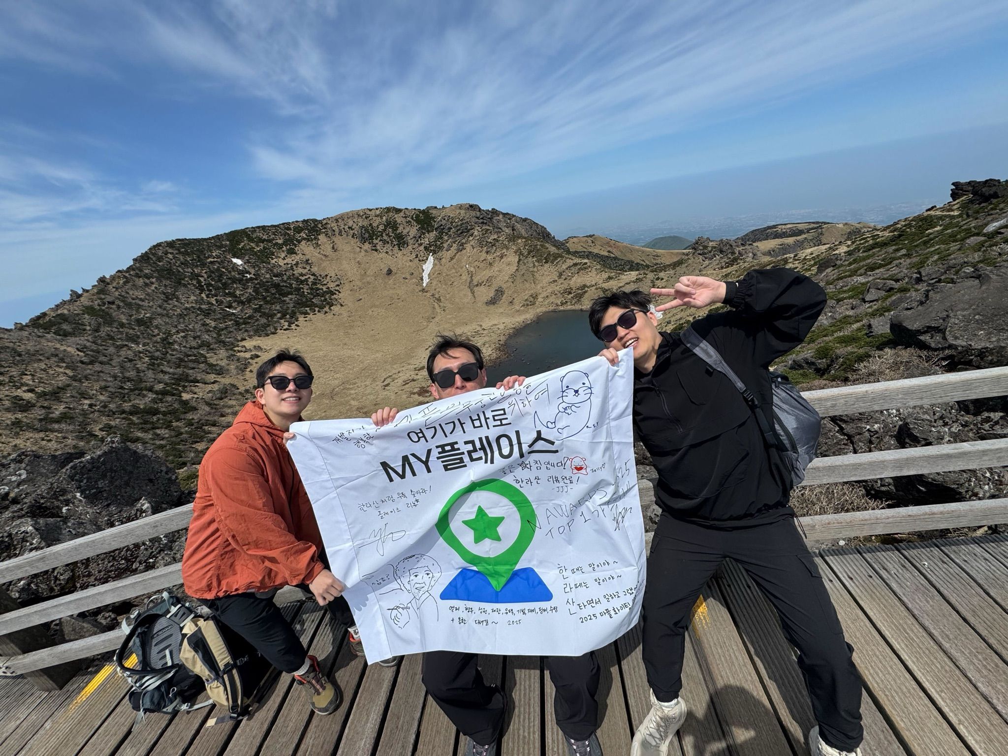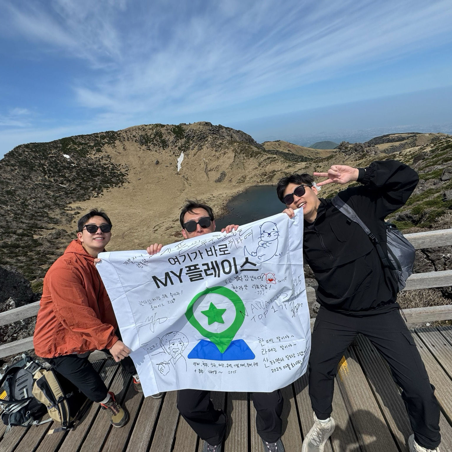 한라산 백록담에서 리뷰 완료✌️ 2025 마이플레이스 화이팅! 💪