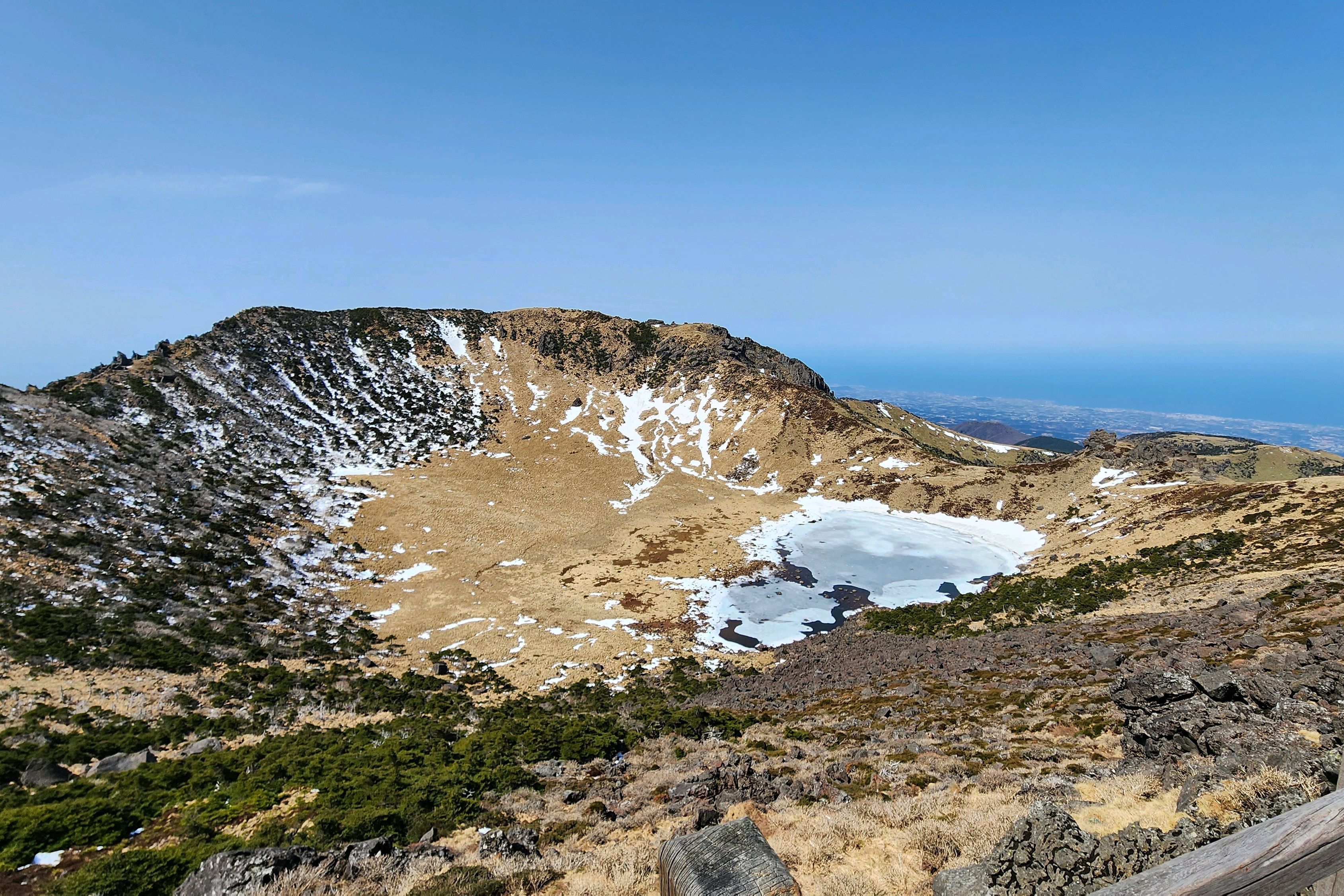 한라산 탐방 예약 후 관음사/성판악 코스 둘 중 하나로 올라가면 볼 수 있고 제가 갔을 때는 백록담에 물이 살짝 있어서 절경이었습니다. 주말이라 관광객 엄청 많았고 줄서서 정상 기념비에서 사진 찍었고 30분 정도 대기했어요. 산 정상이라 굉장히 추우니까 바람막이와 따뜻한 옷 챙겨가면 도움 됩니다.