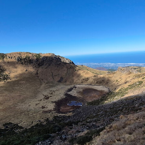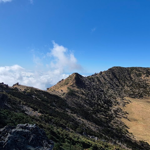 백록담에 물 고인거 보기가 쉽지 않다던데 운이 좋았습니다🤩 중국인 관광객들 때문에 조용한 산행은 어려웠지만.. 그래도 보람있었습니다😂