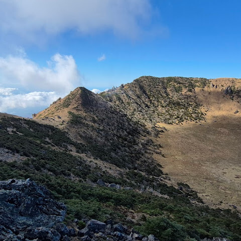 🔍등산후기: 관음사 탐방로 - 탐라계곡 - 개미목 - 삼각봉대피소 - 용진각현수교 - 왕관릉 - 백록담(정상) - 진달래밭대피소 - 사라오름입구 - 속밭대피소 - 성판악 (겨울산행으로, 왕관릉 부근 옛 용진각대피소에서 올라가는 경사도가 꽤 높음)