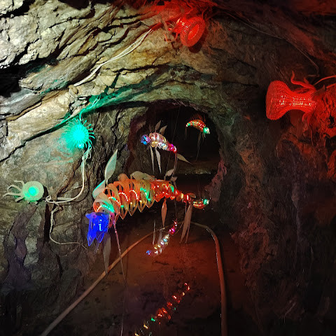 빛나는 동굴. 몇몇 수족관도 있습니다. 원래는 1900년대 초에 채굴이 활발했던 광산이었습니다. 수십 년 동안 방치되다가 2011년에 관광 명소로 재개발되었습니다.